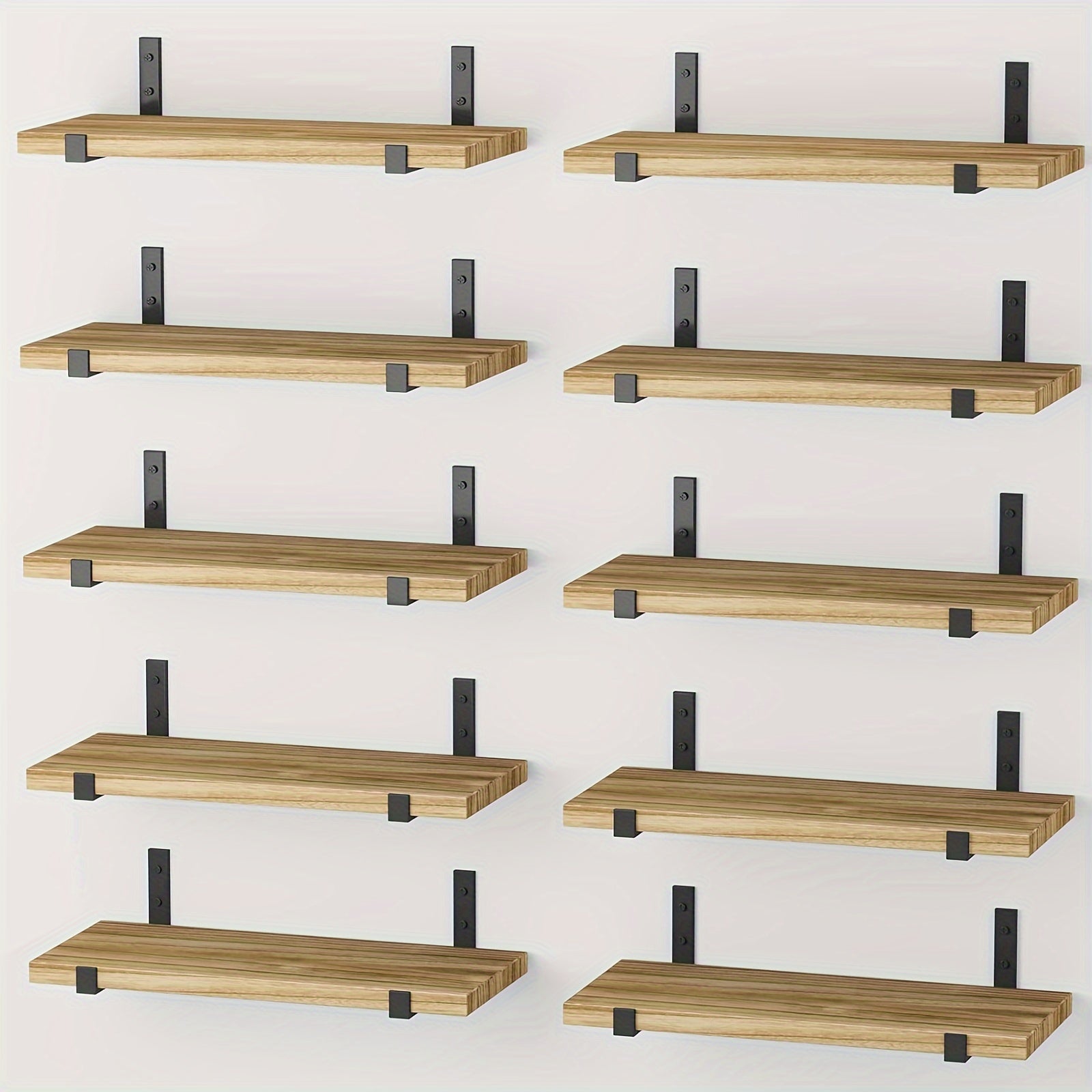 10-Pack Heavy-Duty Floating Shelves - Natural Wood Modern Minimalist Wall Shelves, Large 15.8x5.9 Inch Floating Shelves for Living Room, Kitchen, Bathroom, Bedroom - Easy Installation with Pre-Drilled Holes - Space-Saving Sto