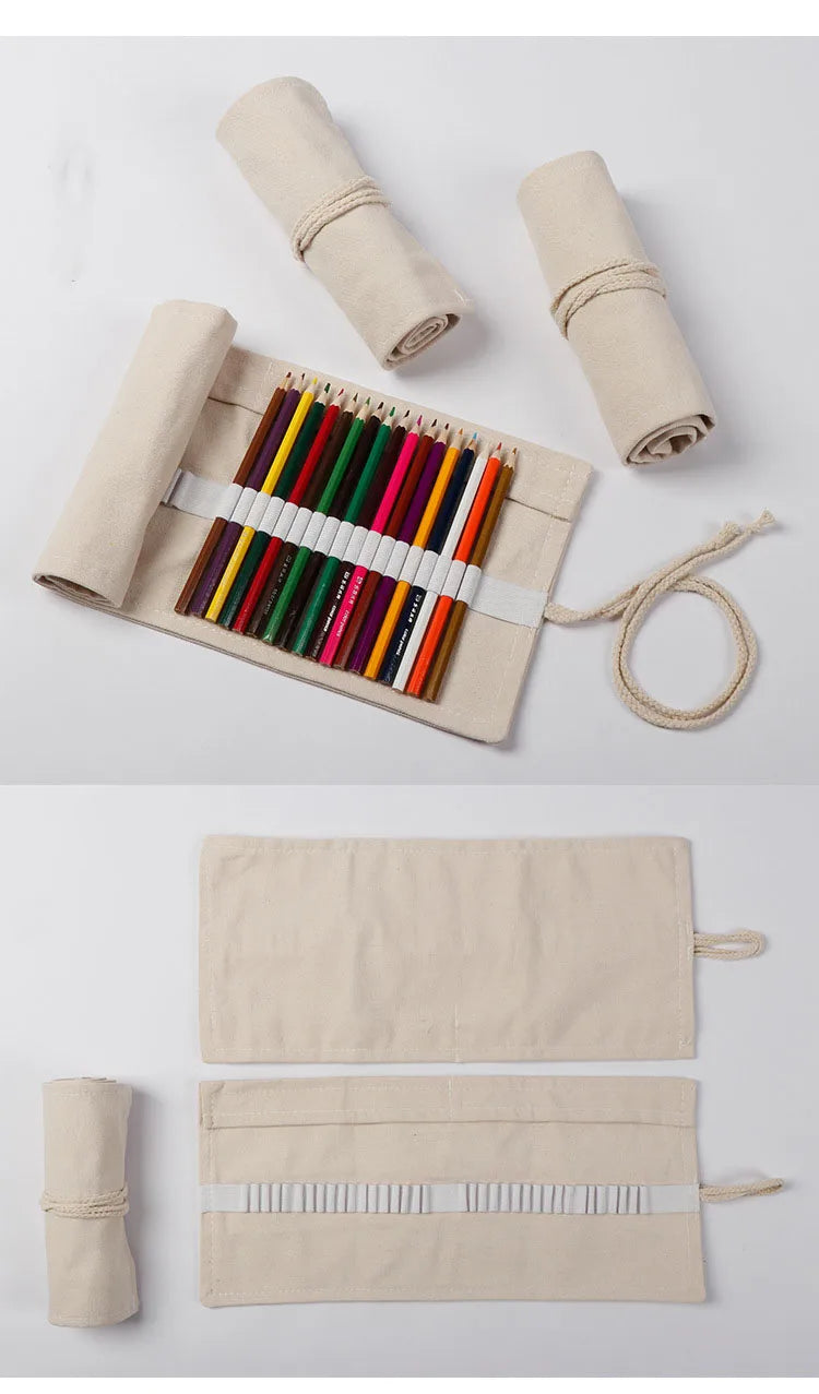 Unroll your creativity with this colorful canvas pencil roll, available in sizes from 12 to 72 slots to suit every artist, student, or stationery lover.