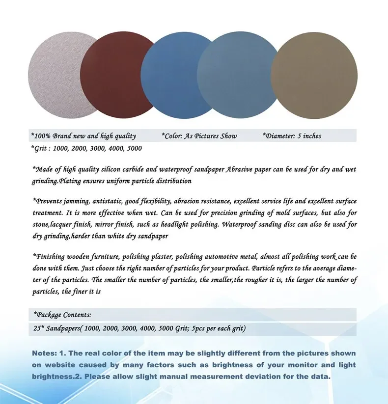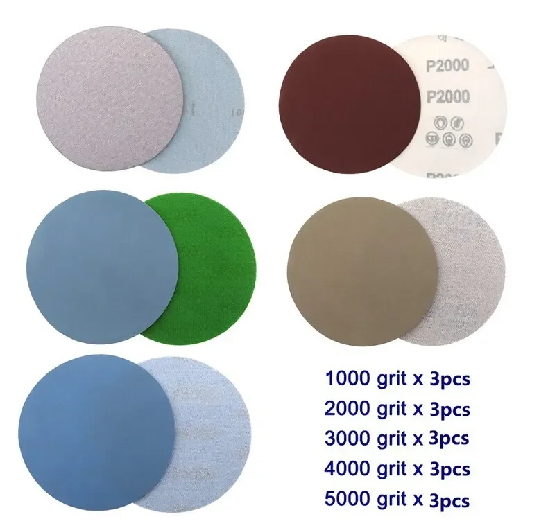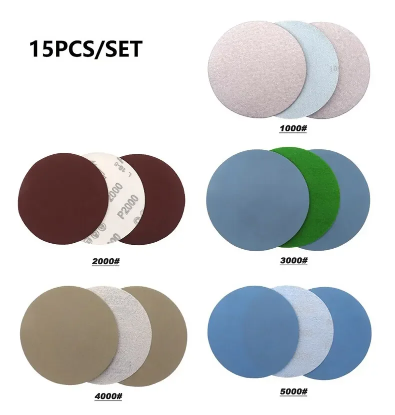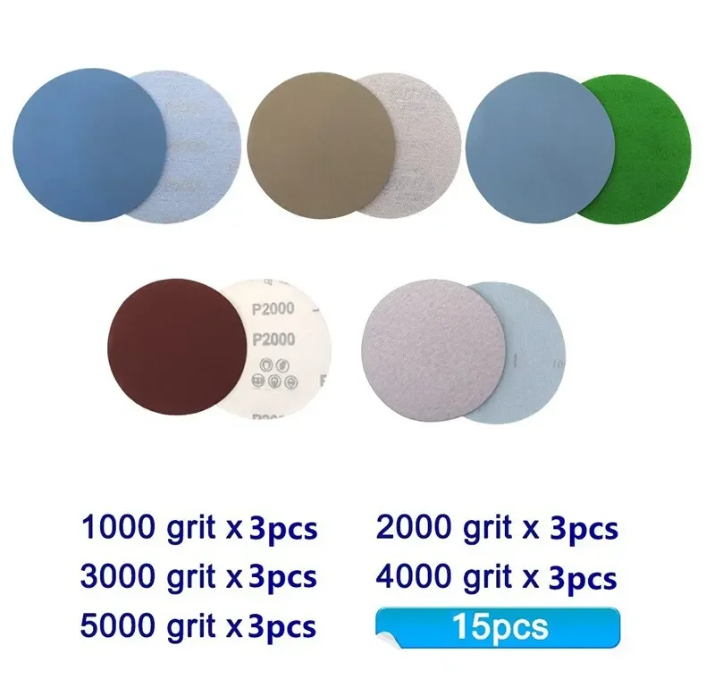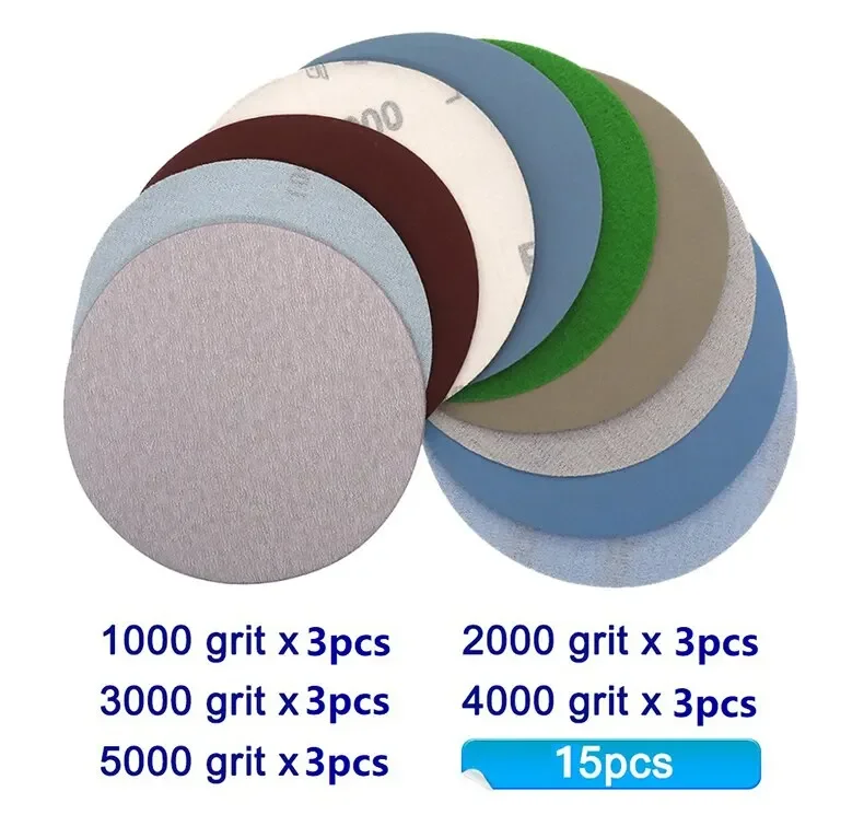 15 PCS Inches Grit 1000 2000 3000 4000 5000 Sanding Discs Hook Loop Sandpaper Round Disk