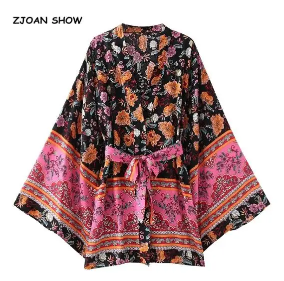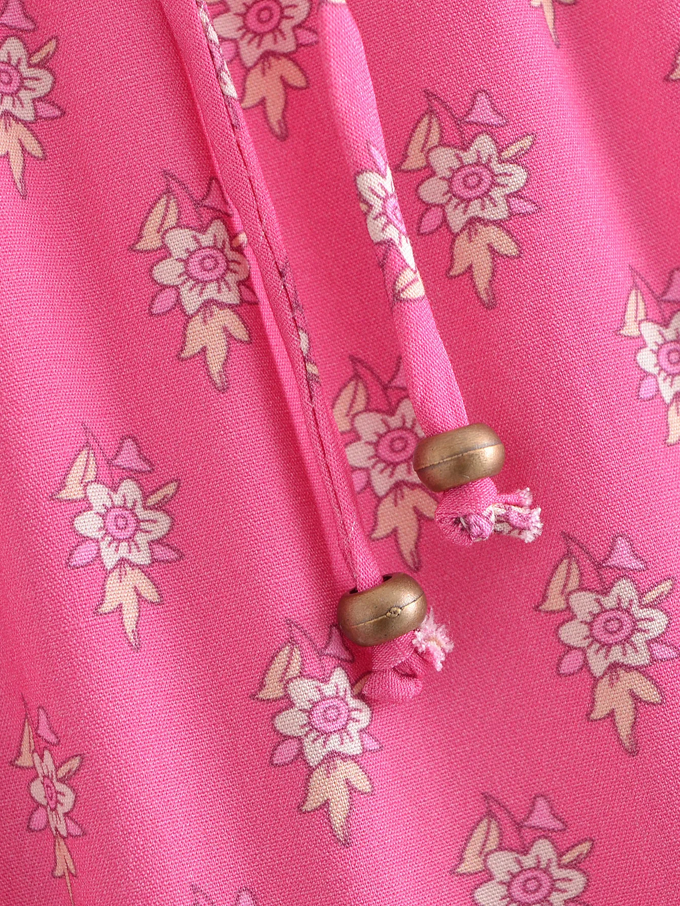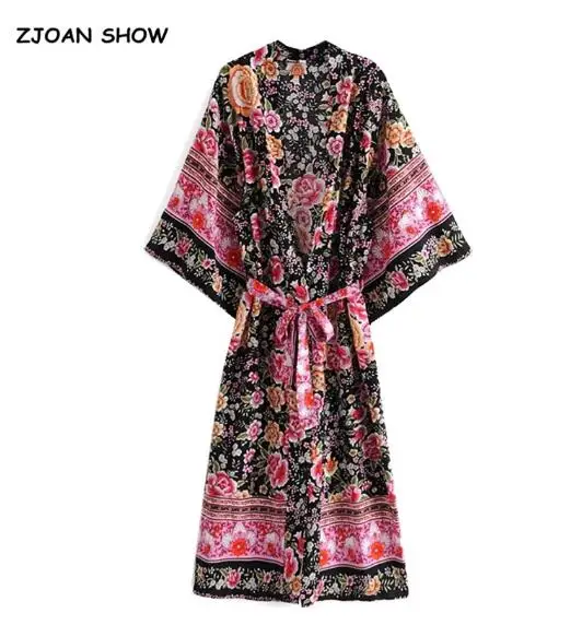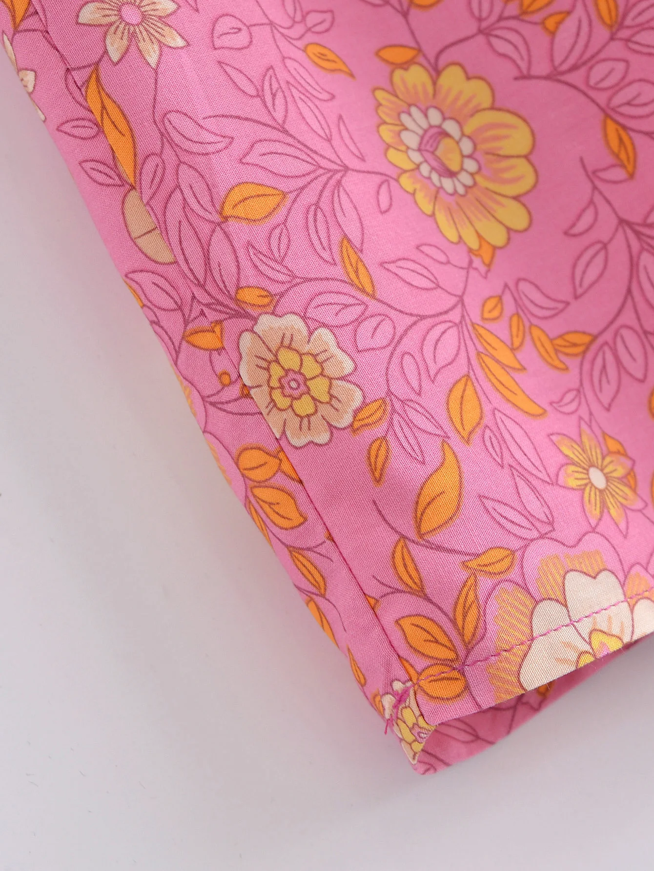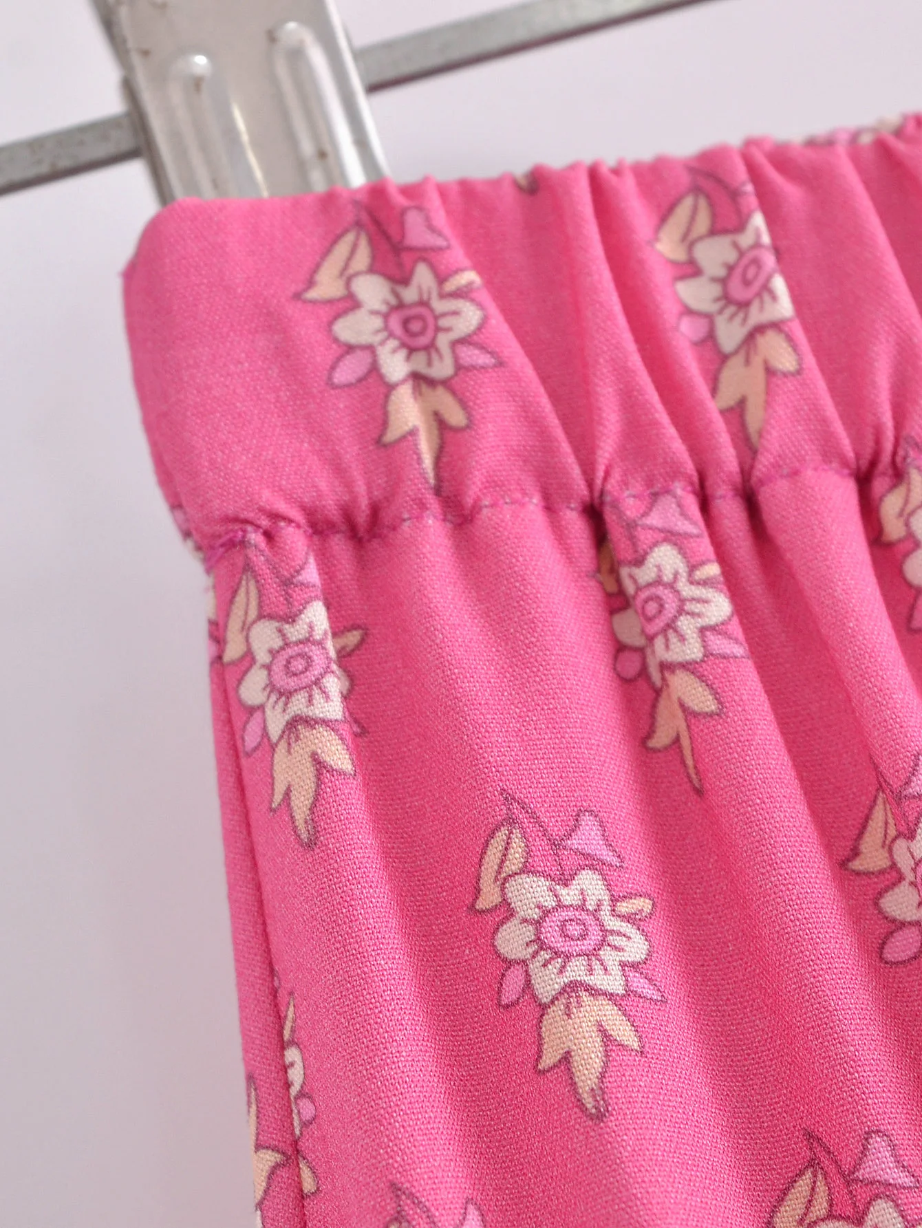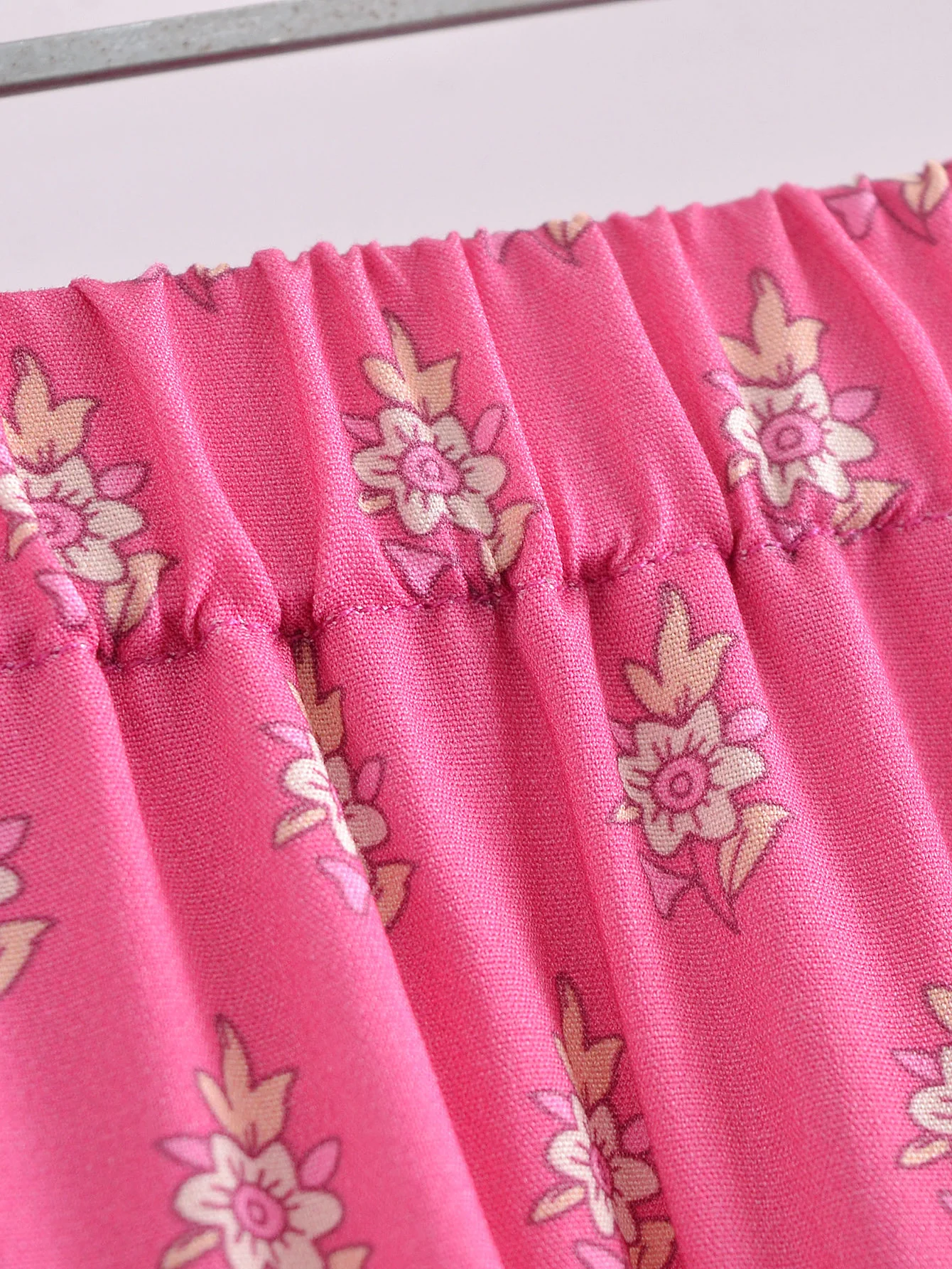 2022 BOHO Orange Flower Print Long Skirt Spliced Ruched Ruffle Hem Hippie Women Ball Tassel Bow Waist Swing Skirts Holiday