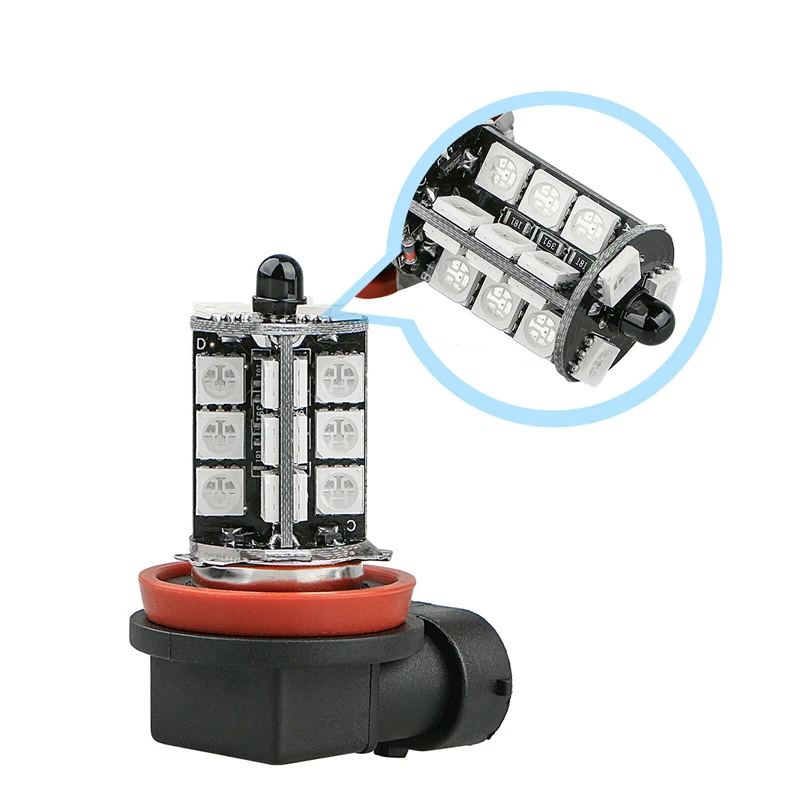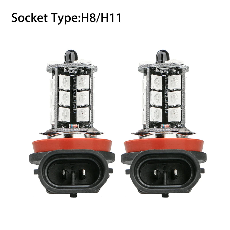 ✨2-In-1 design: 2PCS RGB Car LED Fog Light Bulbs + Remote Control. Every LED light bulb comes with 27 LEDs, low power consumption, durable for long time use.
