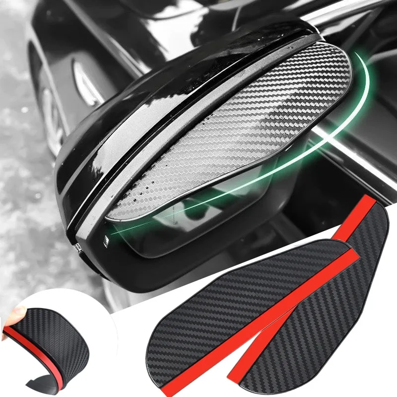 2Pcs Car Rearview Mirror Rain Eyebrow Visor Carbon Fiber Rear View Sun Visor Rainproof Blades Sticker Car Decor Accessories
