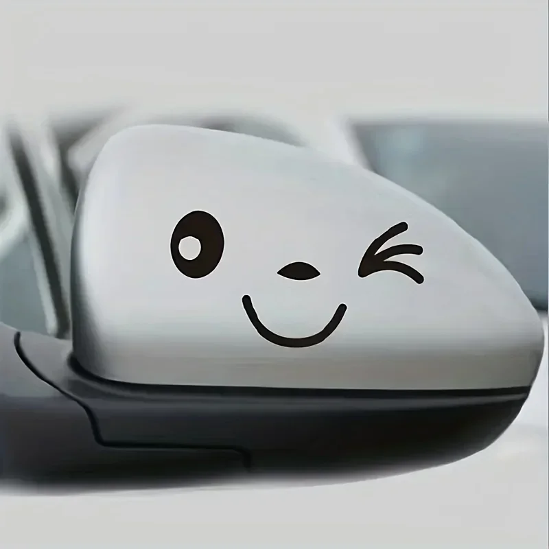 2pcs Cute Cartoon Smiling Face Car Stickers For Motorcycle Truck Rearview Mirror Your