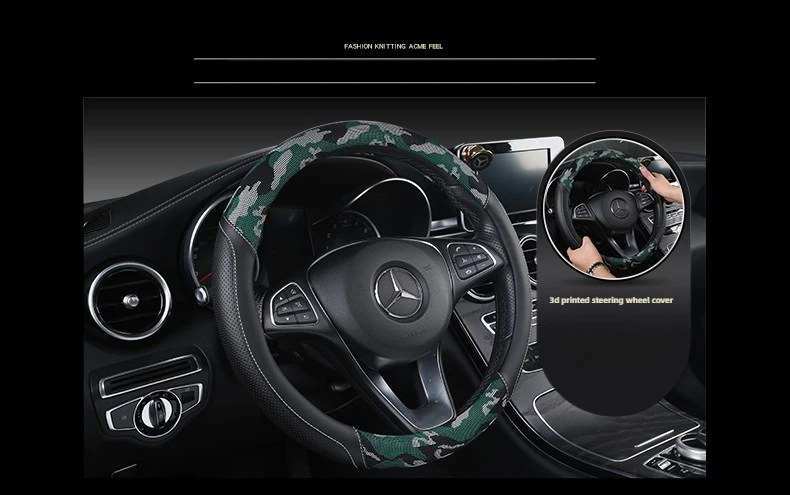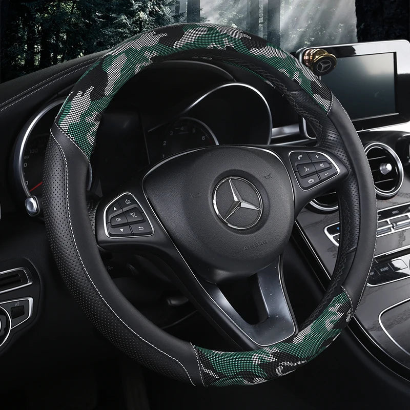 3D Camouflage Print Steering Wheel Cover Durable Leather Cover with Anti-Slip Lining, Fit for 14.5"-14.8"