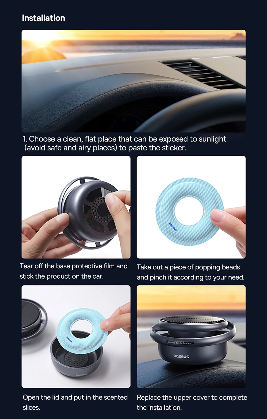 Baseus Solar Car Air Freshener Auto Flavoring Ornament Perfume Decor Interior Car Accessories Rotating Aromatherapy Oil Diffuser