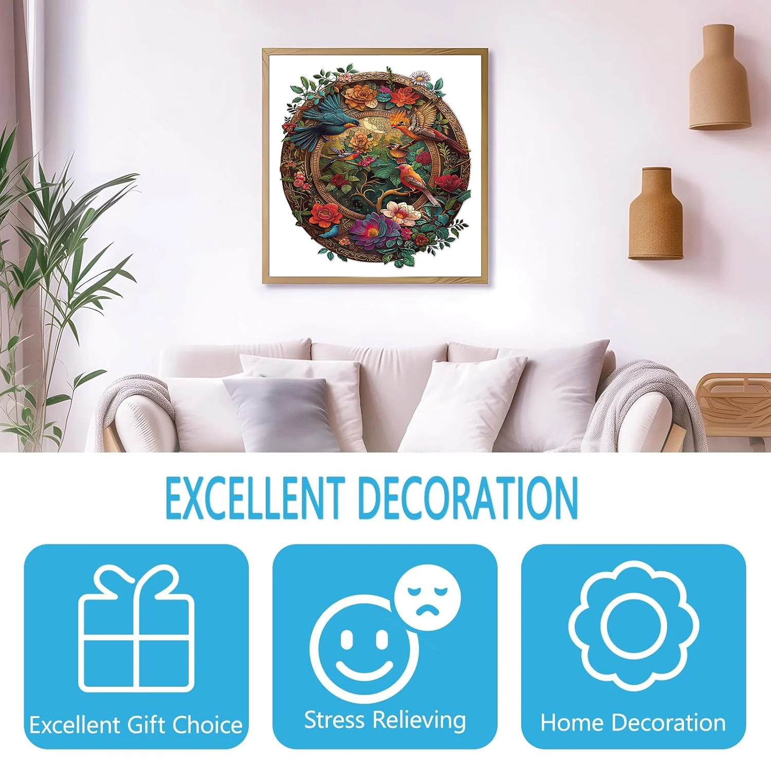 Home Decoration: After completing the puzzle, you can save the puzzle as the decoration of the living room and bedroom to increase the artistry of the room.