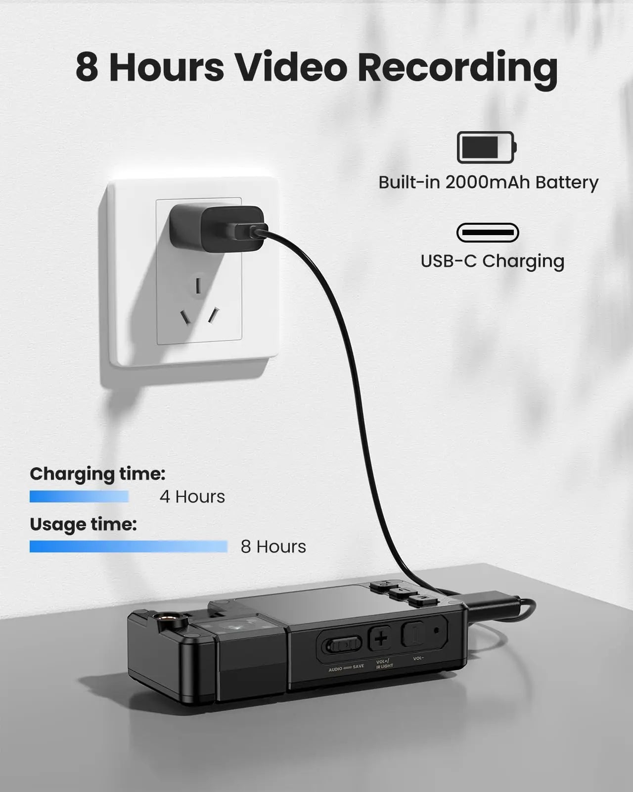 【Built-in 2000 mAh Battery for 8 Hours Recording(IR&screen off)】 BOBLOV A24 body worn camera with audio and video recording could record 8 hours of video after fully charged (in 1080P, IR&Screen Off). Comes with a high quality 64GB card.