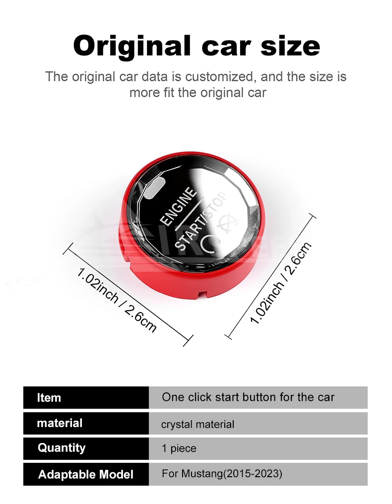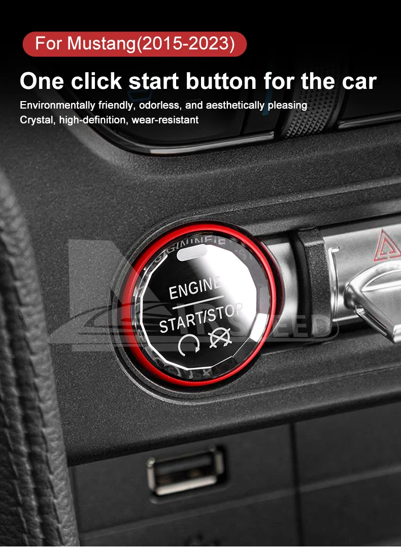 Car Engine Start Button Replace Ignition Cover For Ford Mustang 2015 2016 2017 2018 2019 2020 2021 2022 2023 Crystal ABS Switch