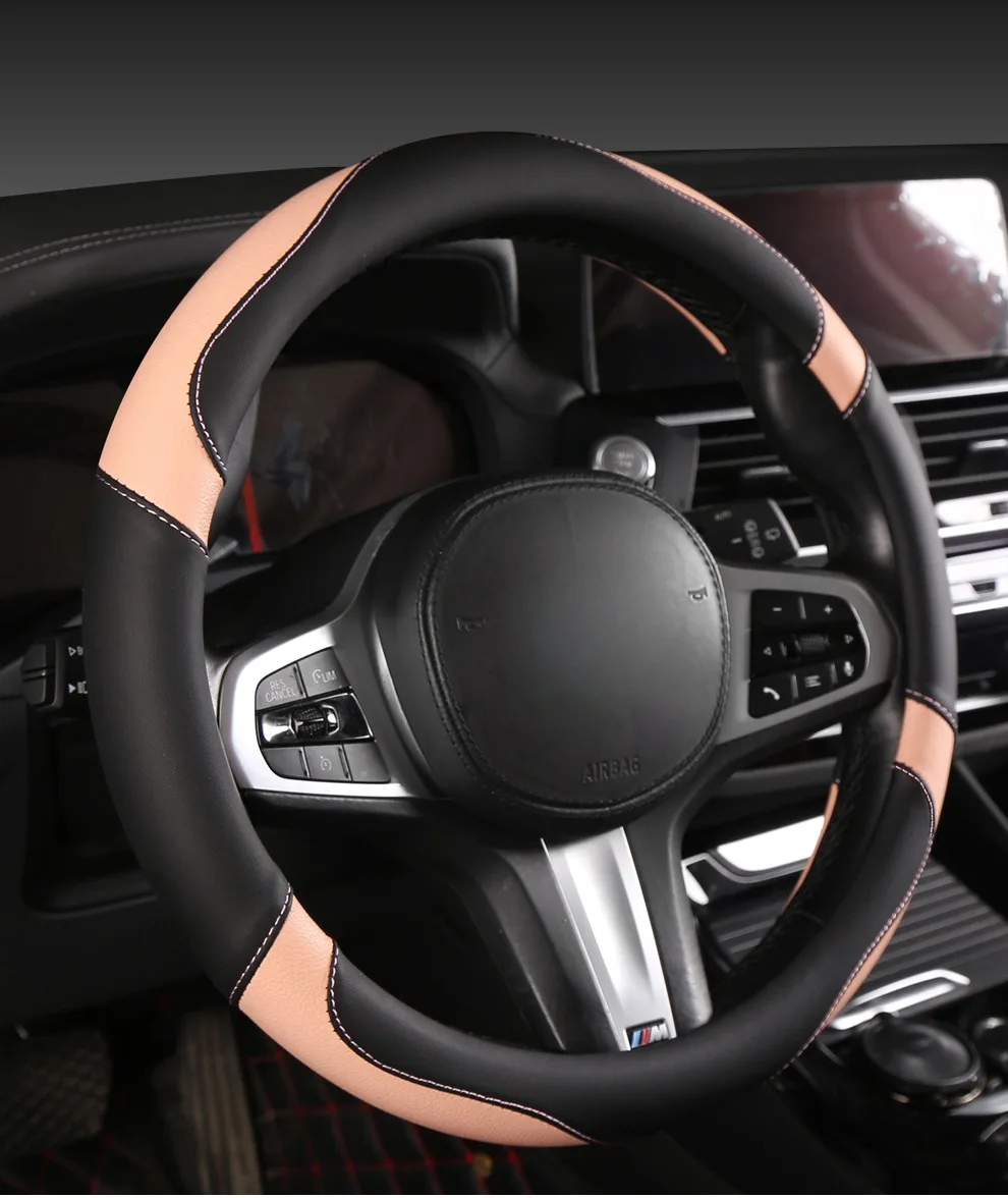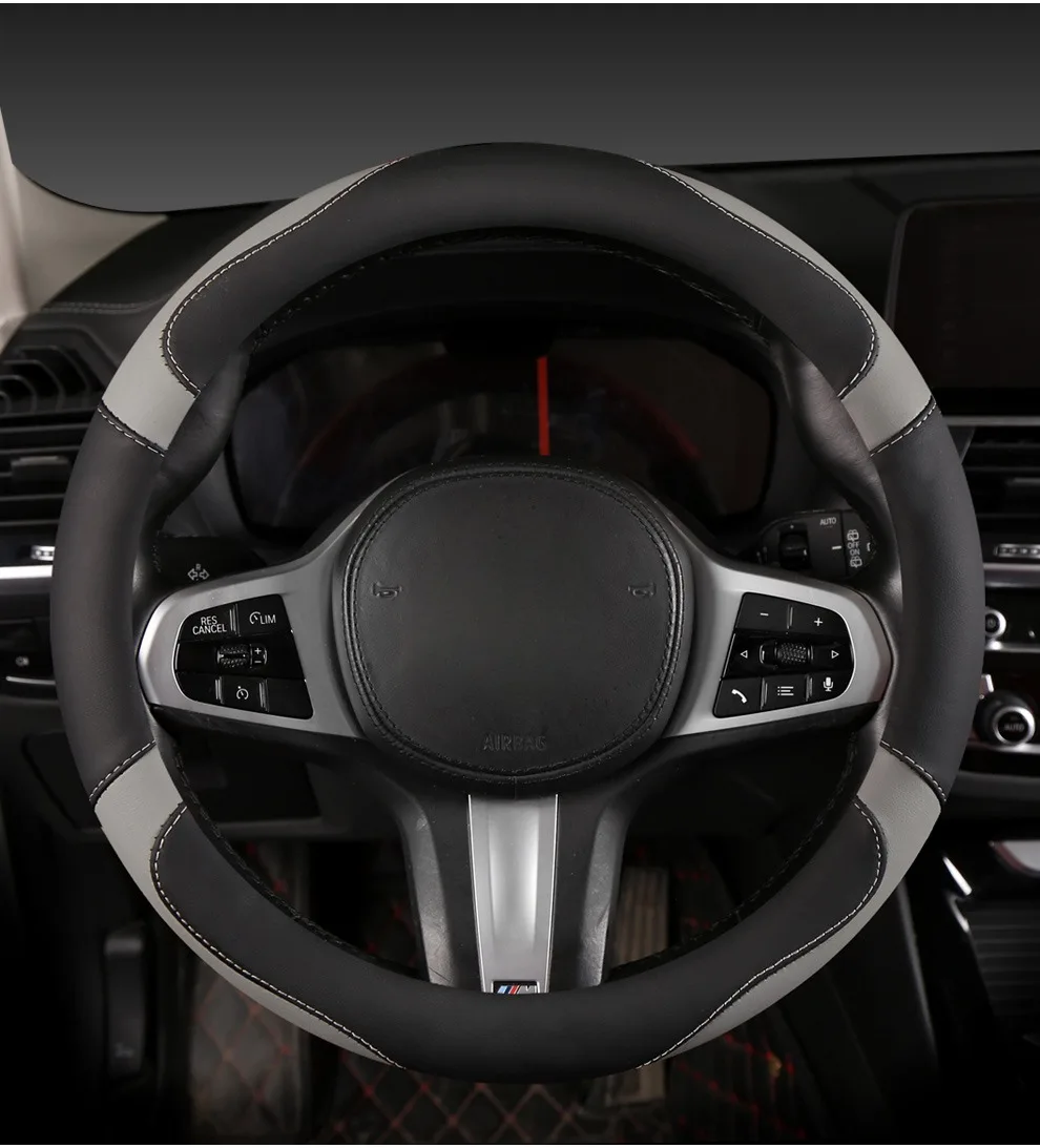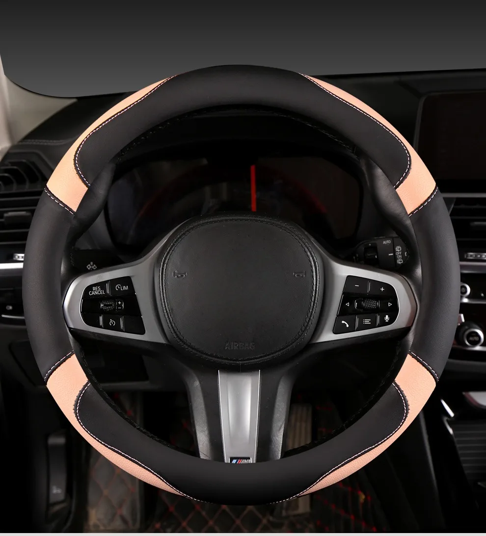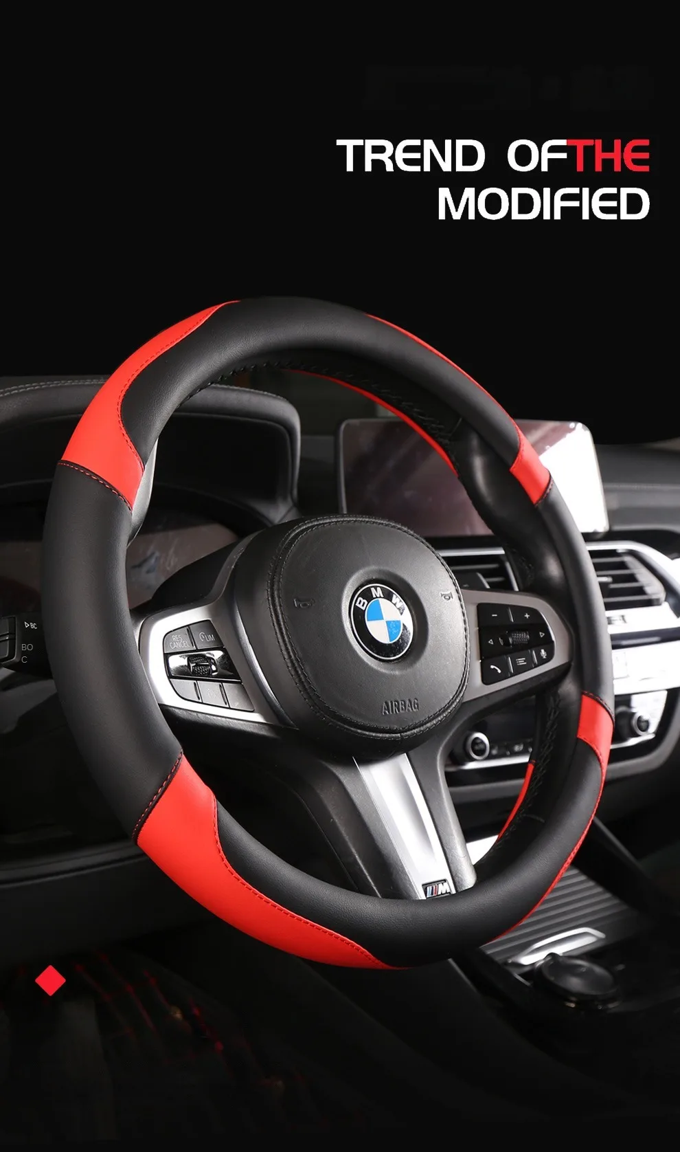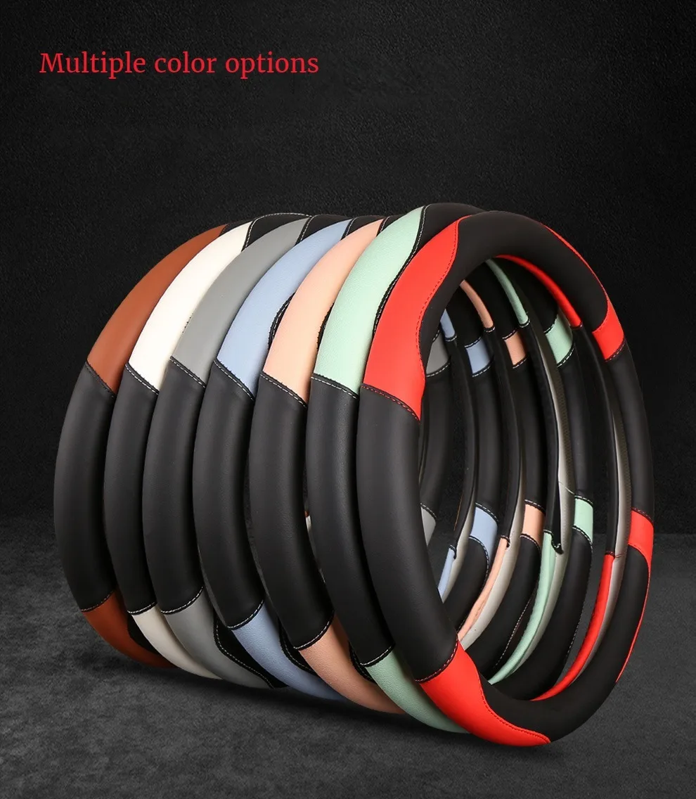 Car Steering Wheel Cover - Universal Car for Diverse Cars, Durable Leather Cover with Anti-Slip Lining, Fit for 14.5"-15"