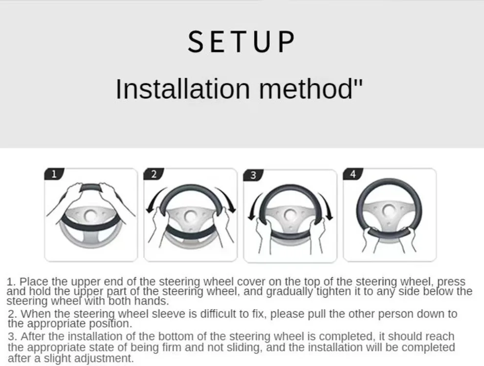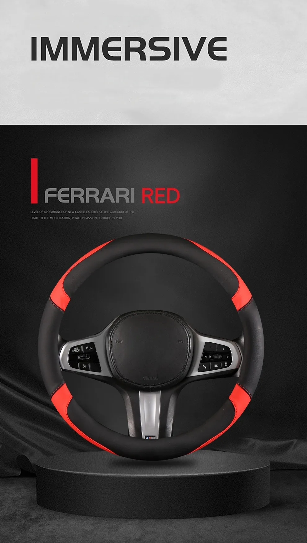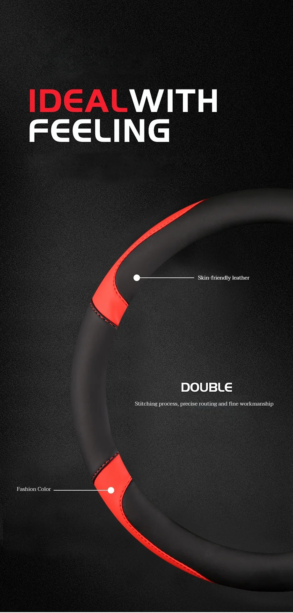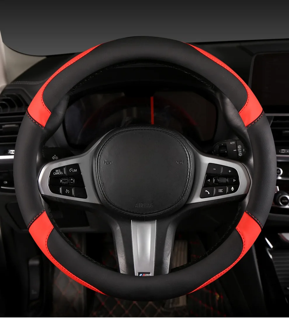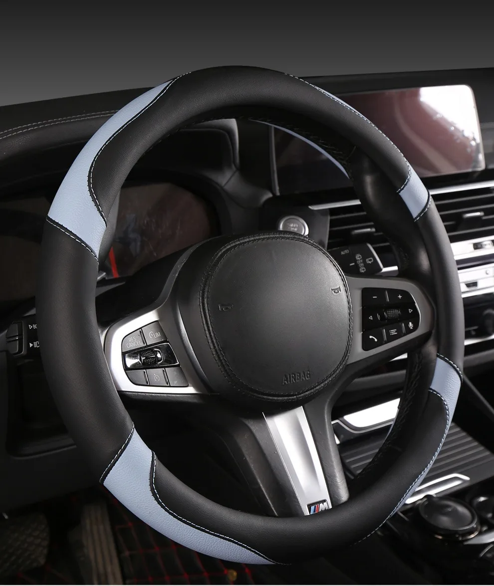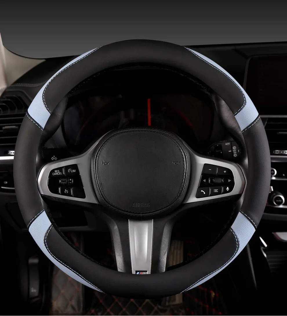 Car Steering Wheel Cover - Universal Car for Diverse Cars, Durable Leather Cover with Anti-Slip Lining, Fit for 14.5"-15"