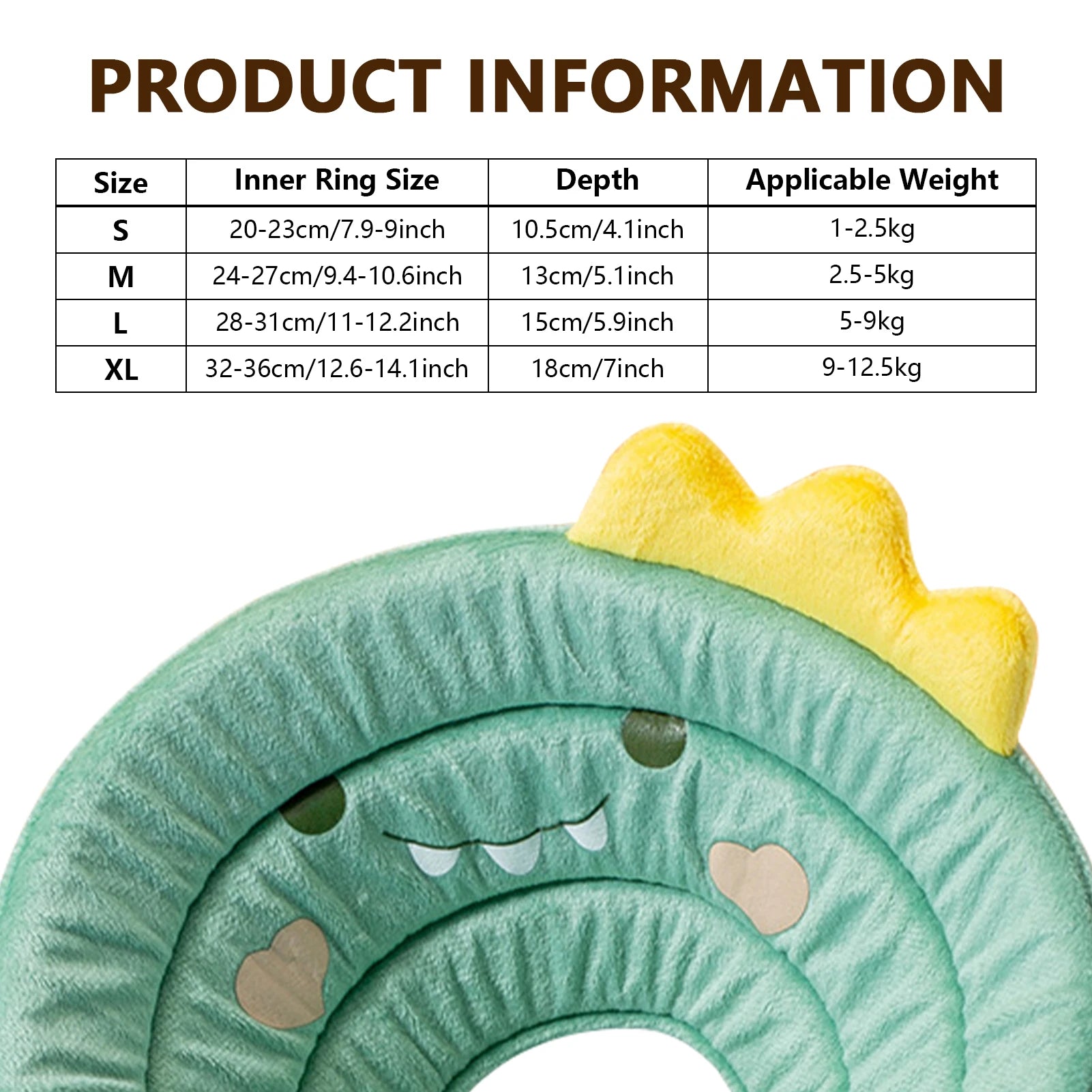 4. Wide Range of Application: The dinosaur pattern cat recovery collar is adjustable for better fitting your pets. It can be used as a pet pillow and is widely suitable for postoperative recovery, bathing, and grooming.