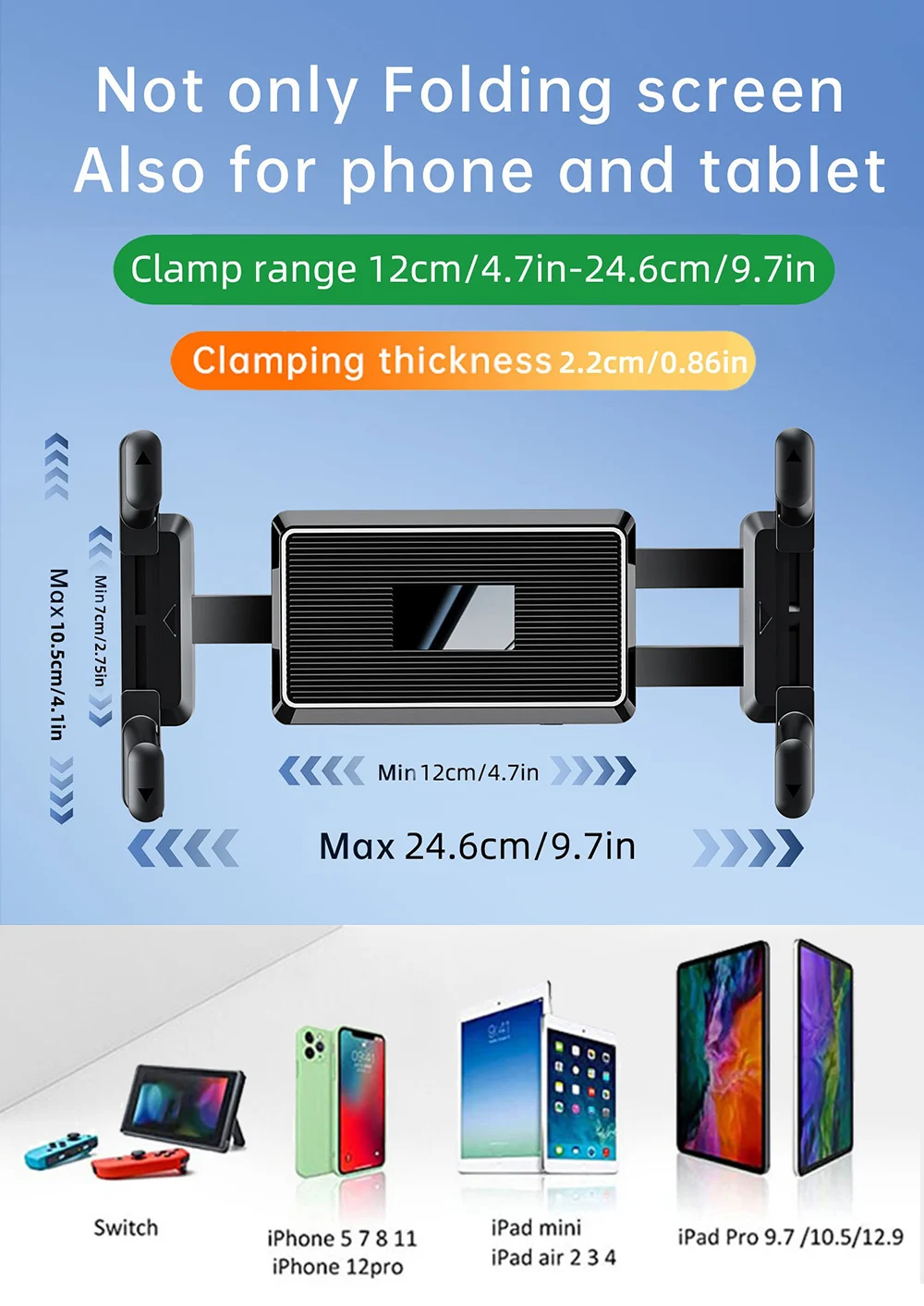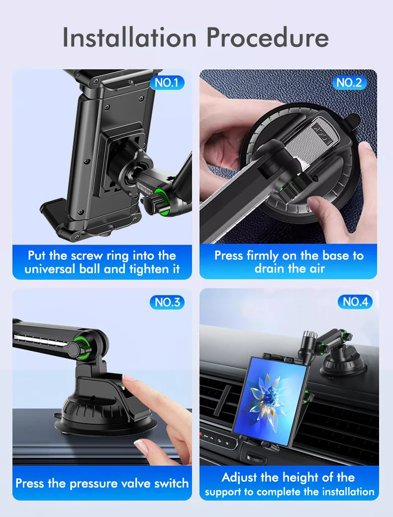 Dashboard Tablet Holder for Car Suction Car Mount With for All 7"-15" Pad Tablet and 4" - 7"Straight Panel Phone