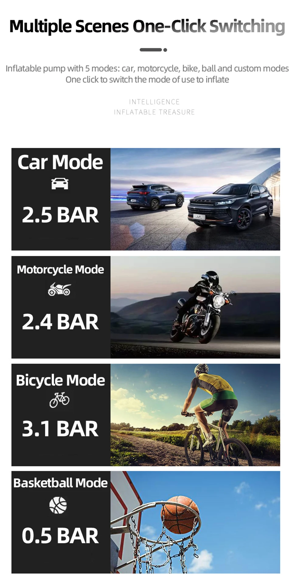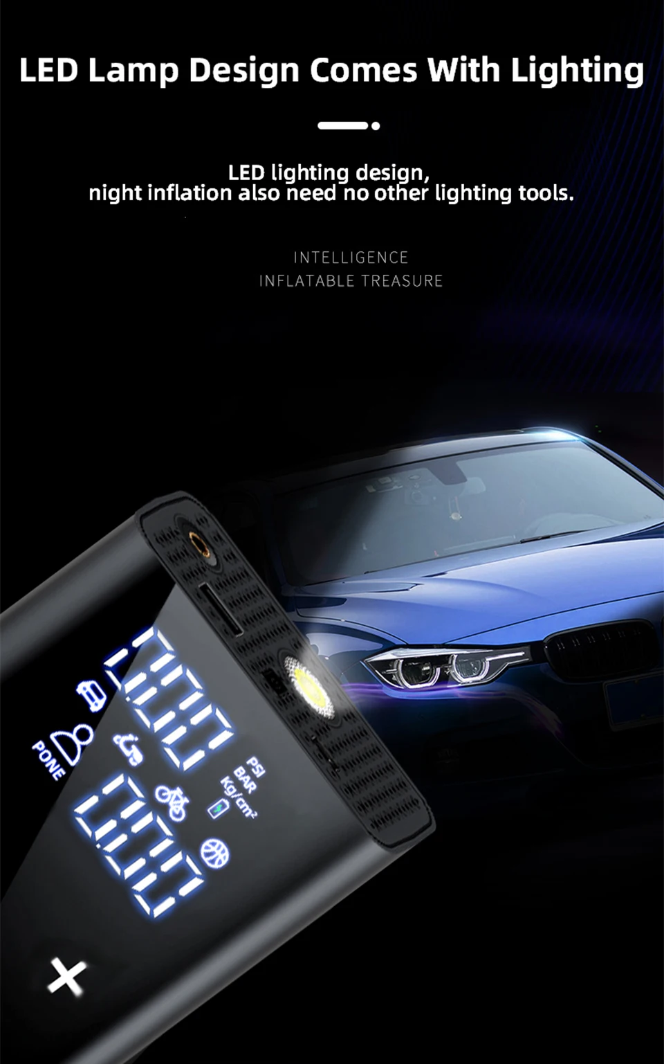 ●Multifunctional: This air compressor is equipped with 4 nozzle adapters. It can be inflated next to the tire, as well as balls, air cushions, and toys.
