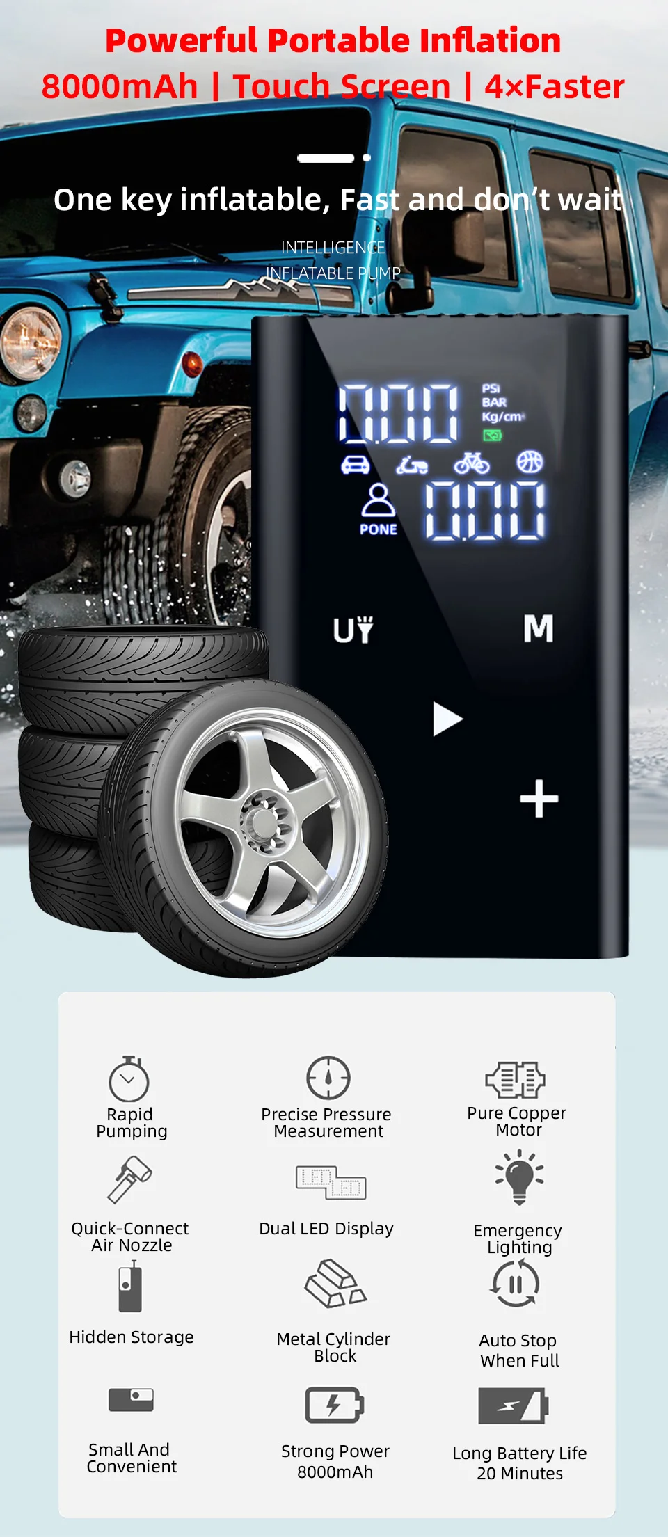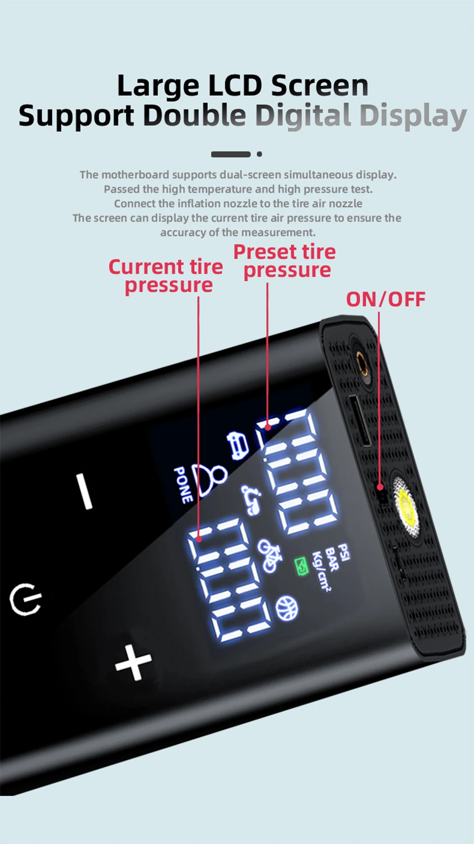 E-ACE Air Pump 150PSI Portable Car Tyre inflator 8000mAh Digital Electric Wireless Air Compressor For Bicycle Ball Motorcycle