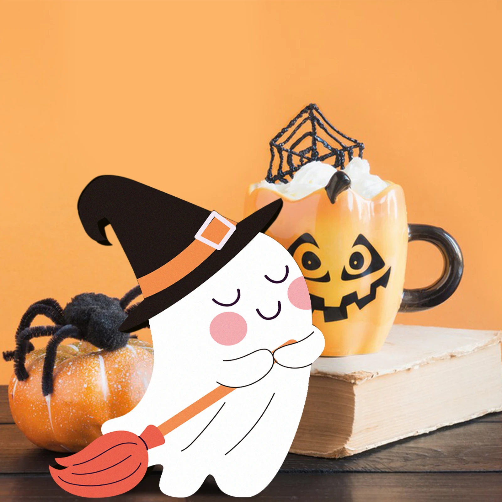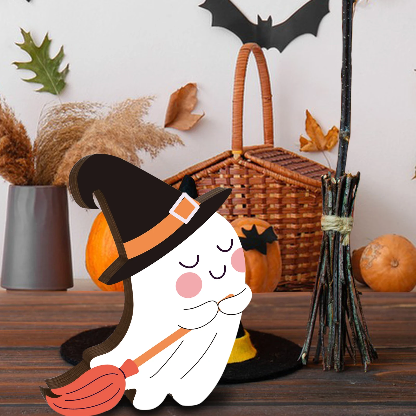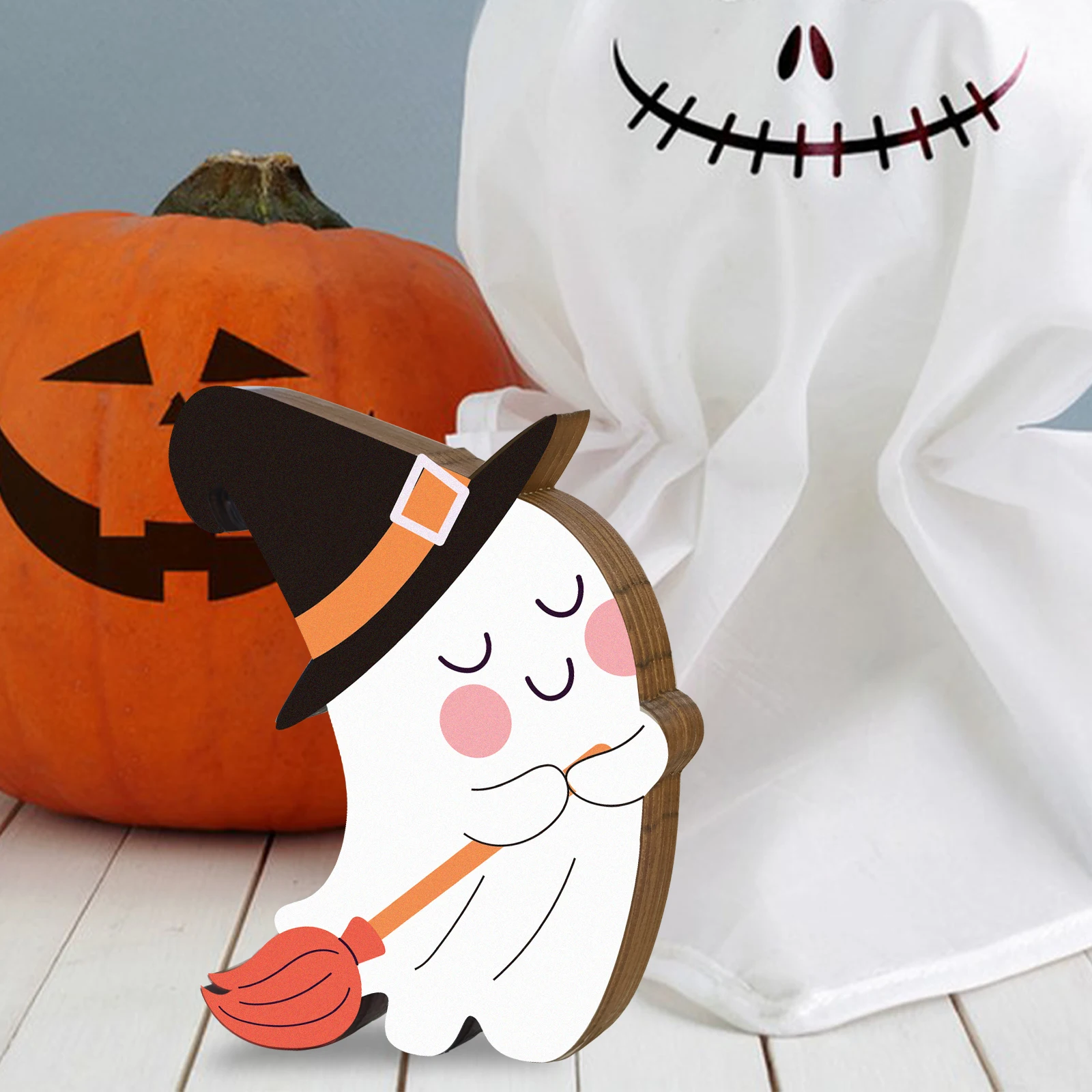 Halloween Theme Wooden Ghost Ornament Cute Pumpkin Witch Hat Design, The Perfect Decoration to Enhance the Festive Atmosphere