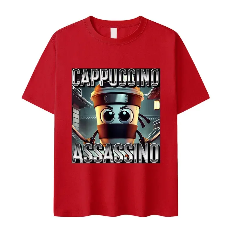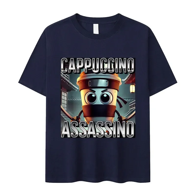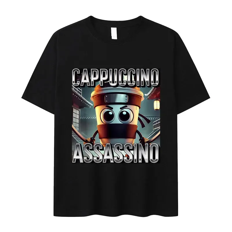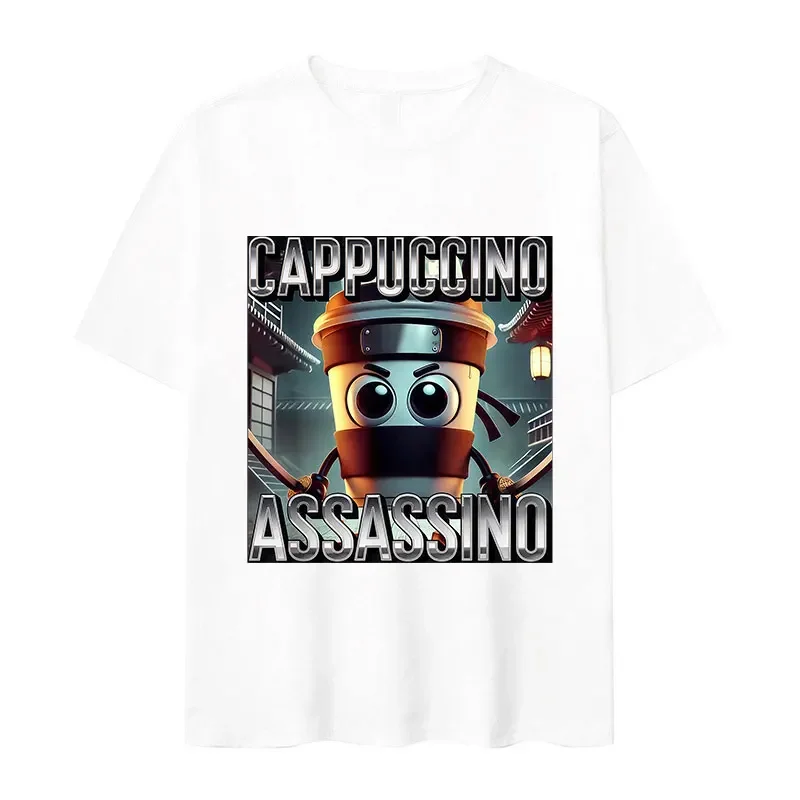 Italian Brainrot Fun Cappuccino Assasino Meme Men's Kawaii Short sleeved T-shirt Summer Round Neck 100% Cotton T-shirt