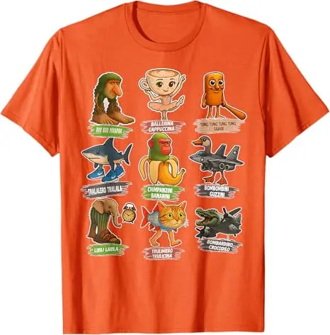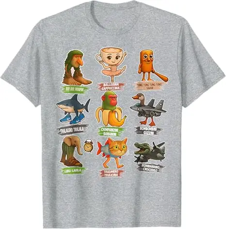 Italian Brainrot Meme Funny All Brainrot Animals Humor T-Shirt Cute Y2k Design Graphic Outfit boys fashion Novelty Gift