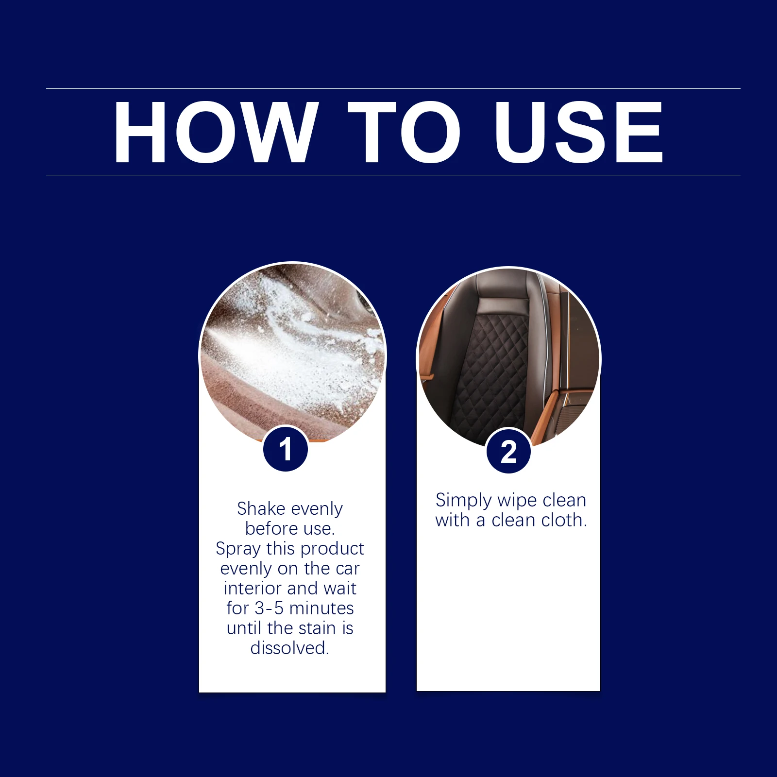 2. Spray this product evenly on the car interior and wait for 3-5 minutes until the stain is dissolved.