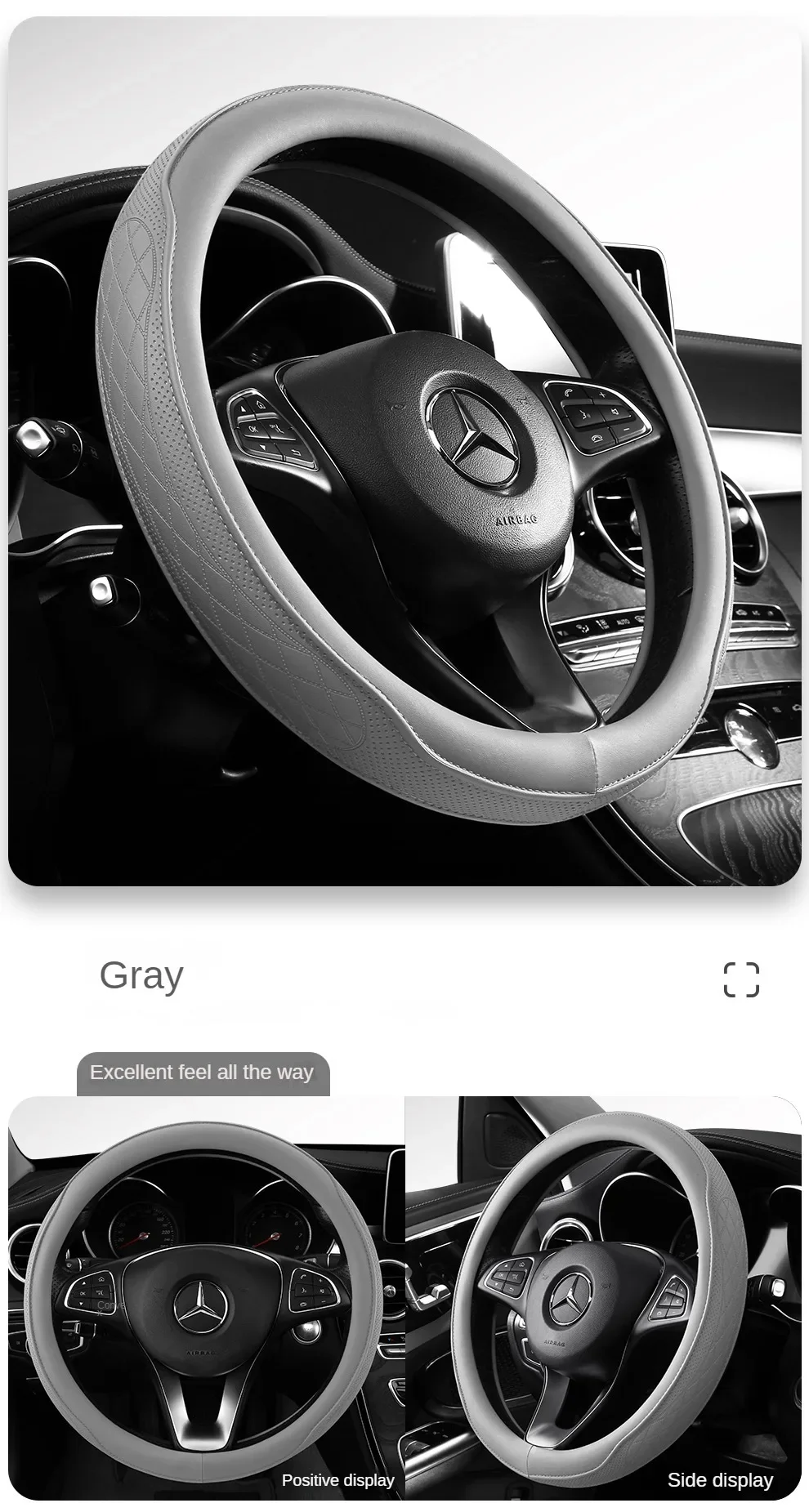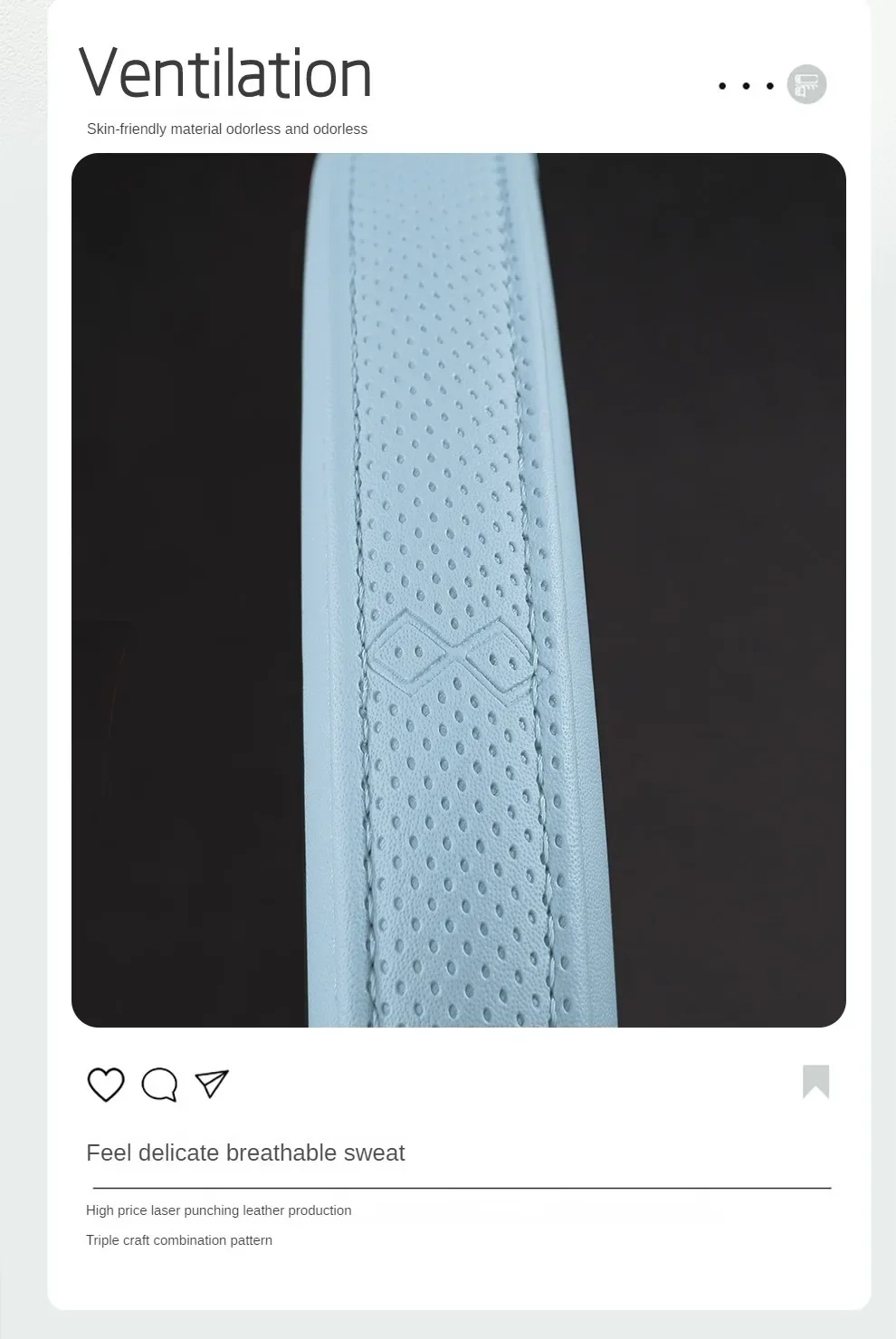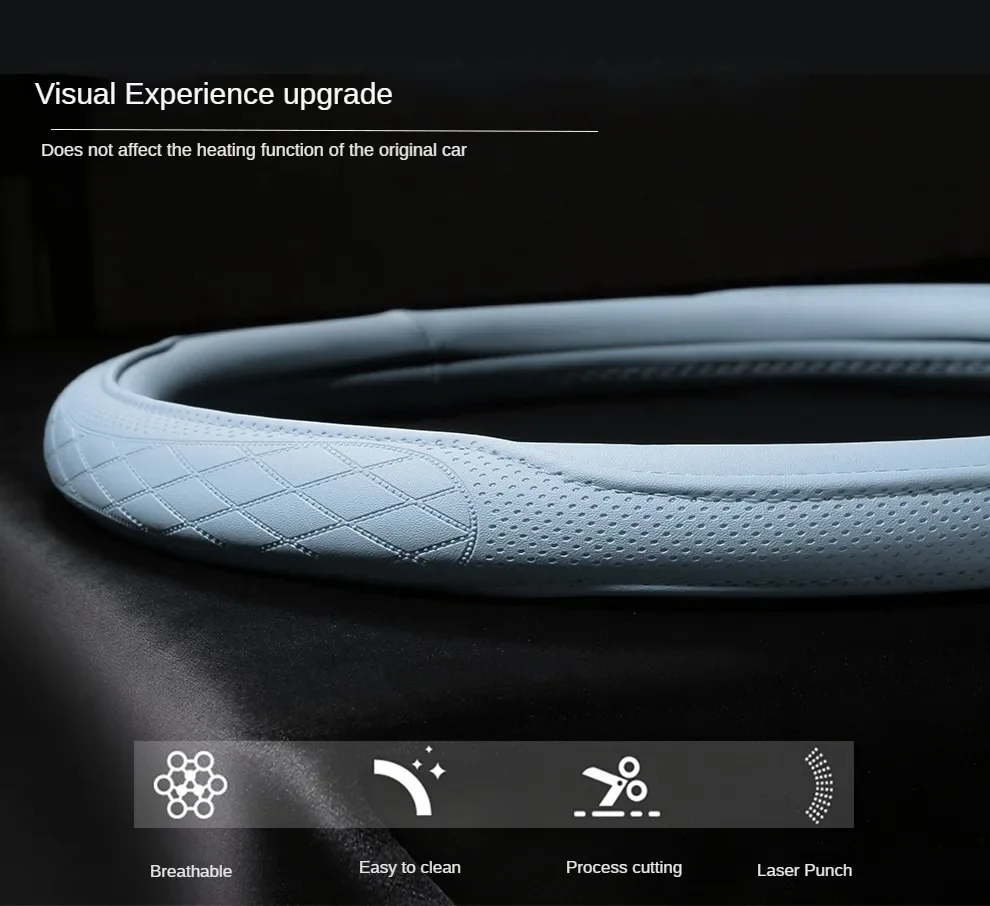 Napa Leather Perforated Patchwork Car Steering Wheel Cover, Non-slip, Breathable, Universal 15 Inch (Approx. 38cm)