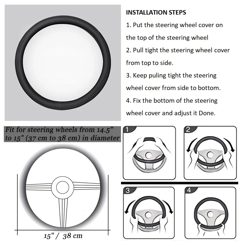 Wheel Cover is suitable for steering wheel diameter from 14 1/2" to 15" (37cm to 38cm), suitable for most vehicles.
