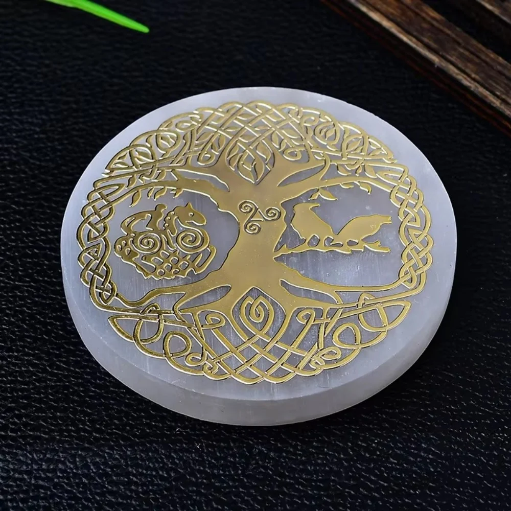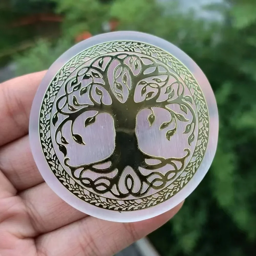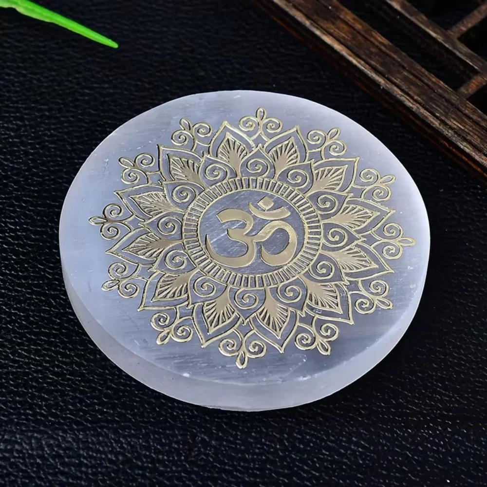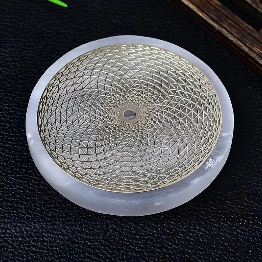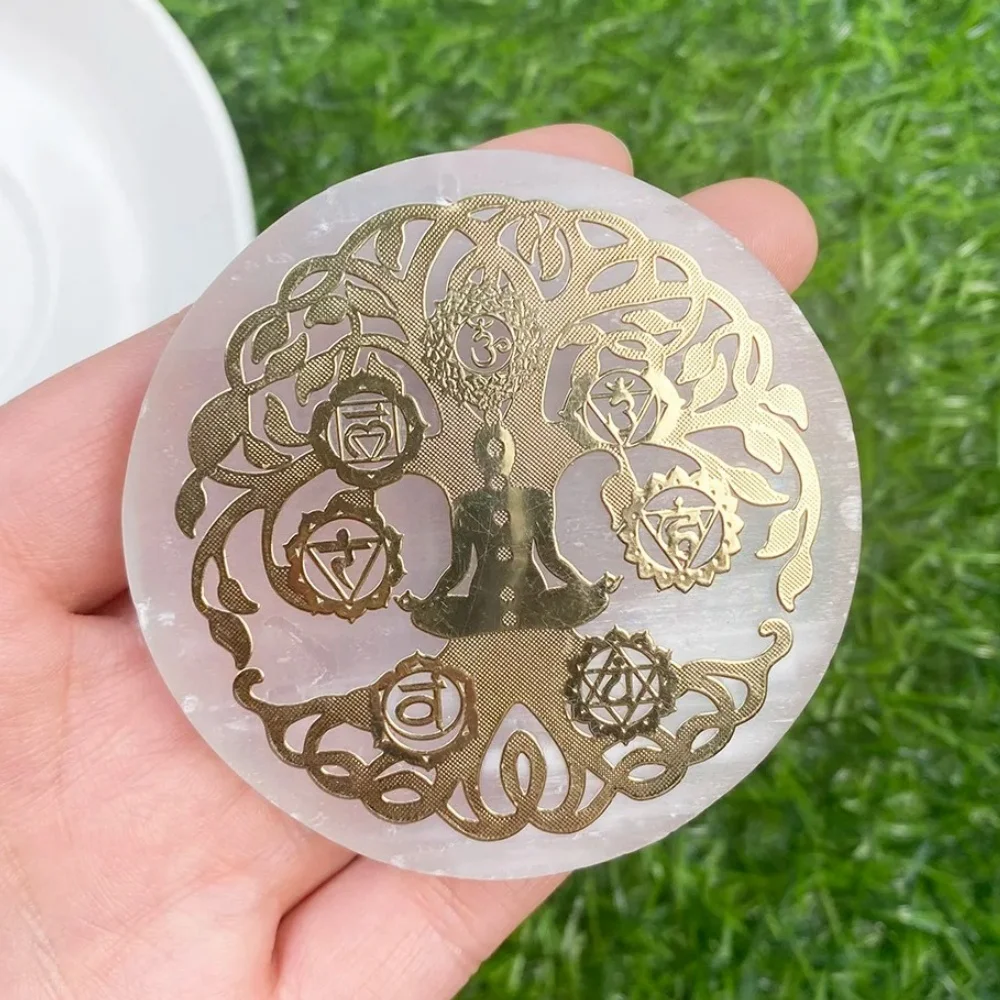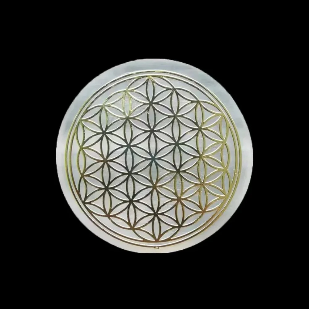 Natural 7 Chakras Flower of Life Selenite Slice Slab White Gypsum Charging Plate Yoga Meditation Healing Crystal Coasters Gift