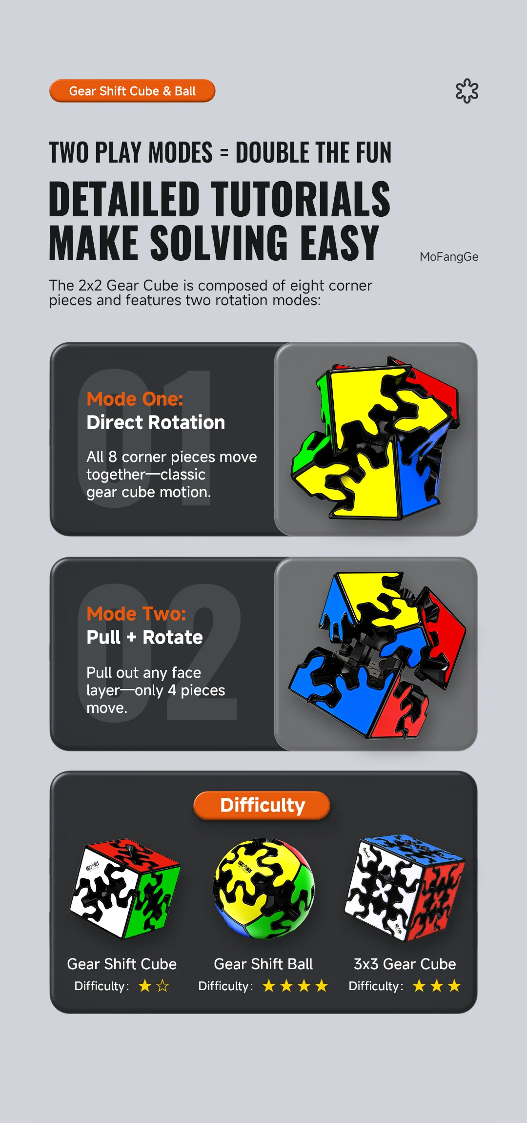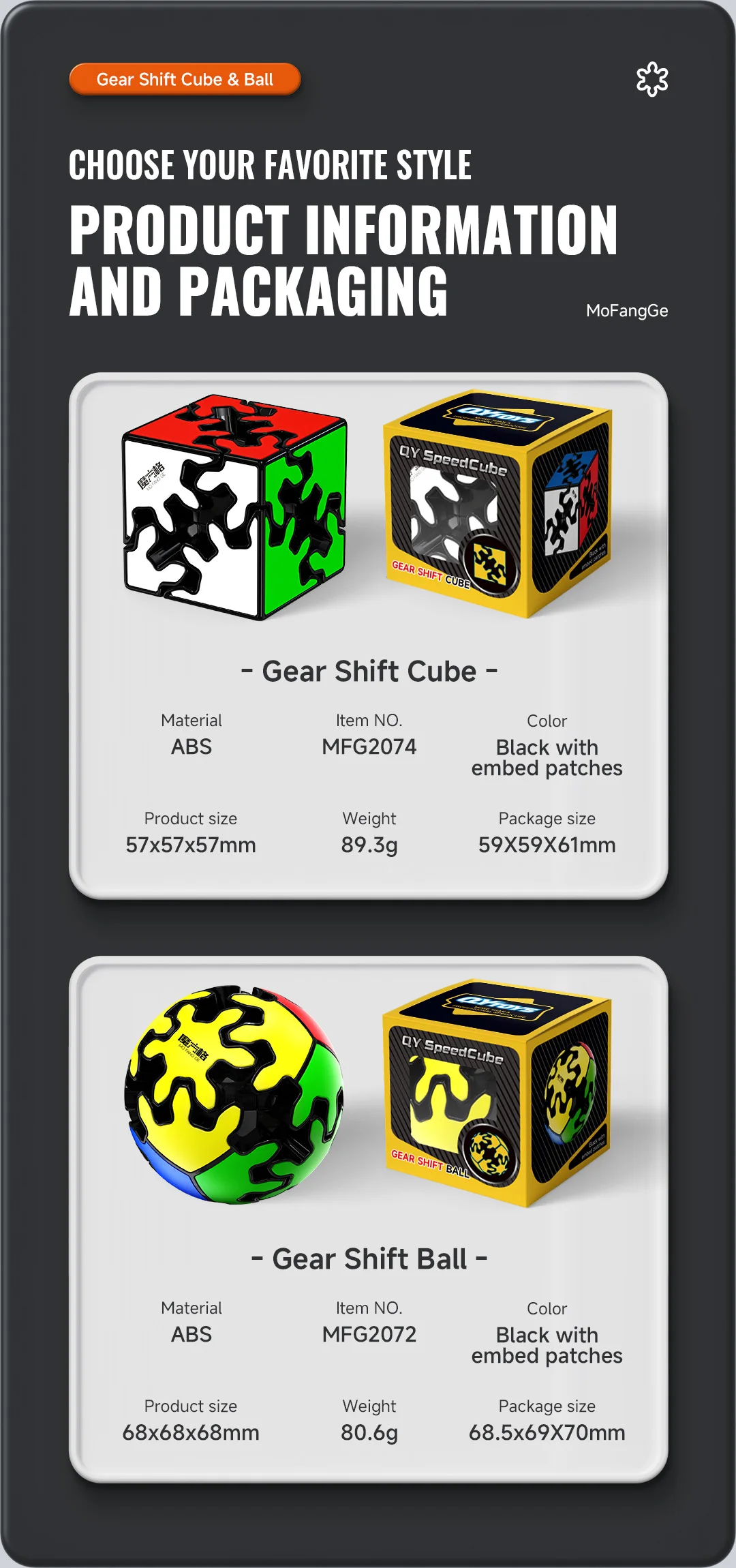 QiYi 2x2 Gear Cube QiYi 2x2 Gear Ball QY Mofangge Magic Cube Stickerless Cube Professional Puzzle Toys Kid Gift