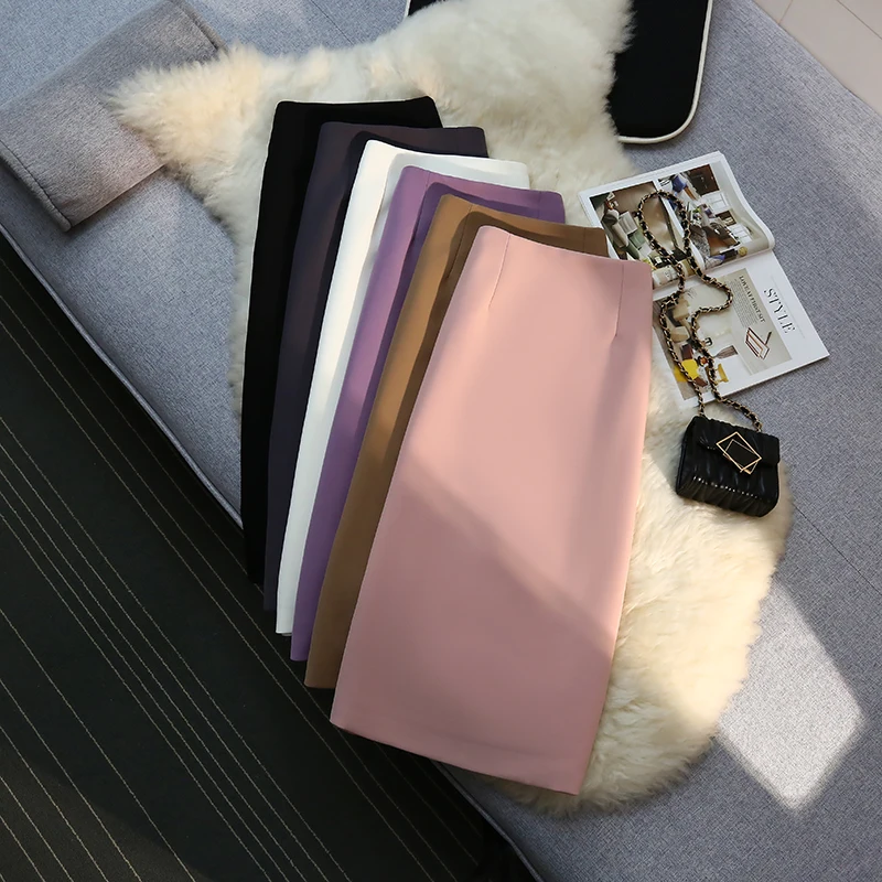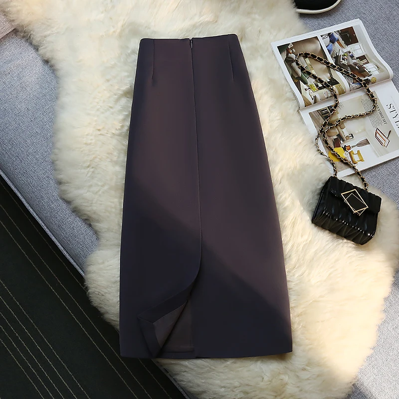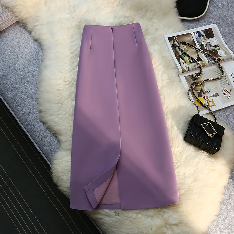 Seoulish 2024 New Spring Summer Elegant Purple Formal Women's Wrap Skirts High Waist Workwear Back Zipper A-Line Skirts Female