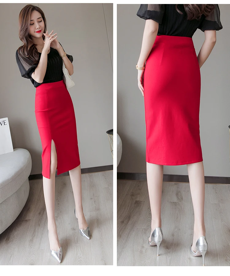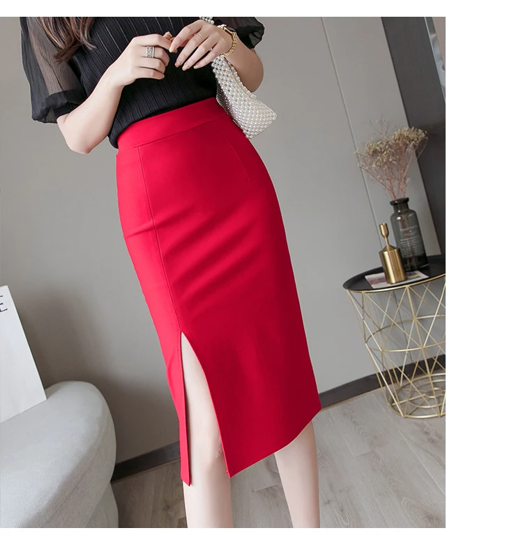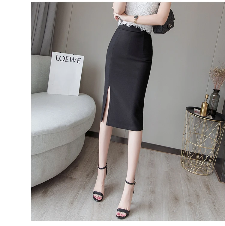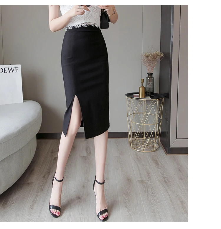Seoulish 2024 New Spring Summer Mid length Women's Skirt Elegant Office Lady Style Solid Split Mid Length Skirts Female