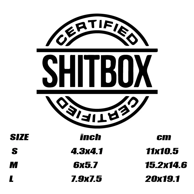 “SHITBOX CERTIFIED”Stickers,funny&creative words stickers with High quality for cars trucks motorcycles &laptops!