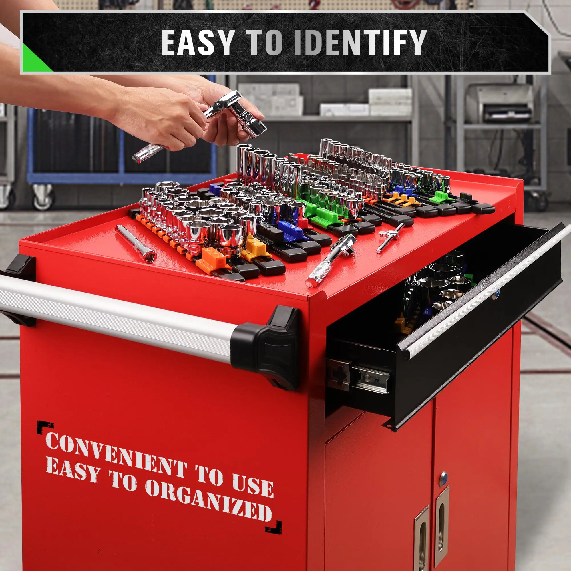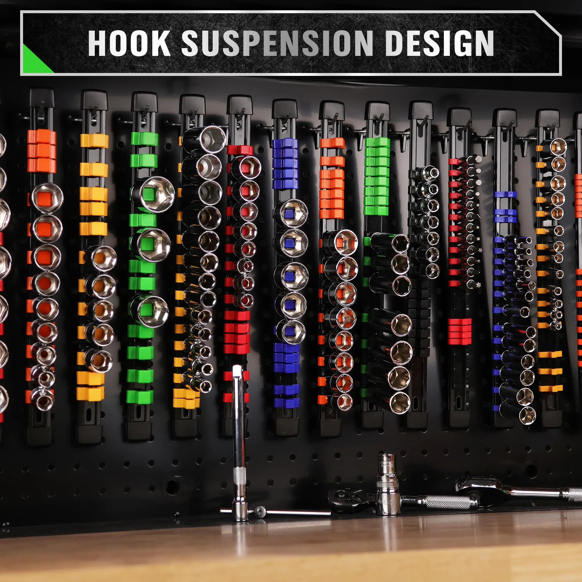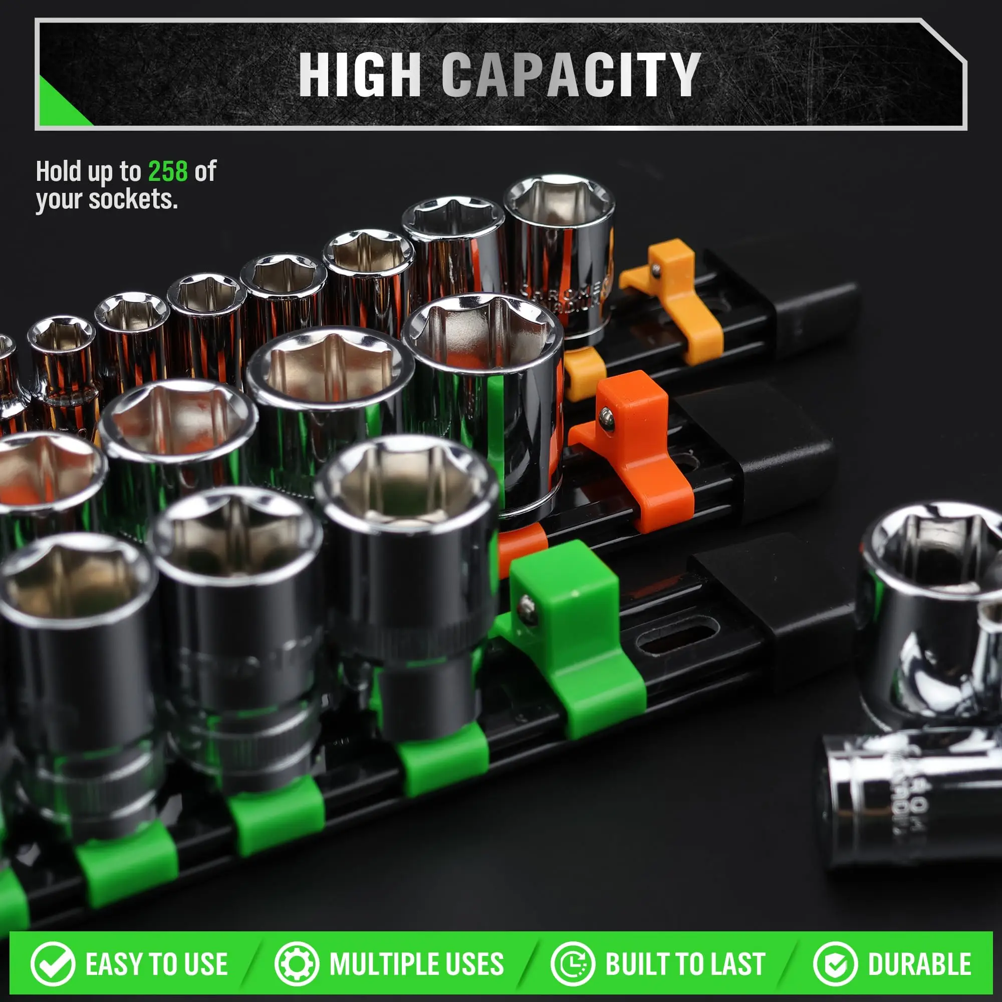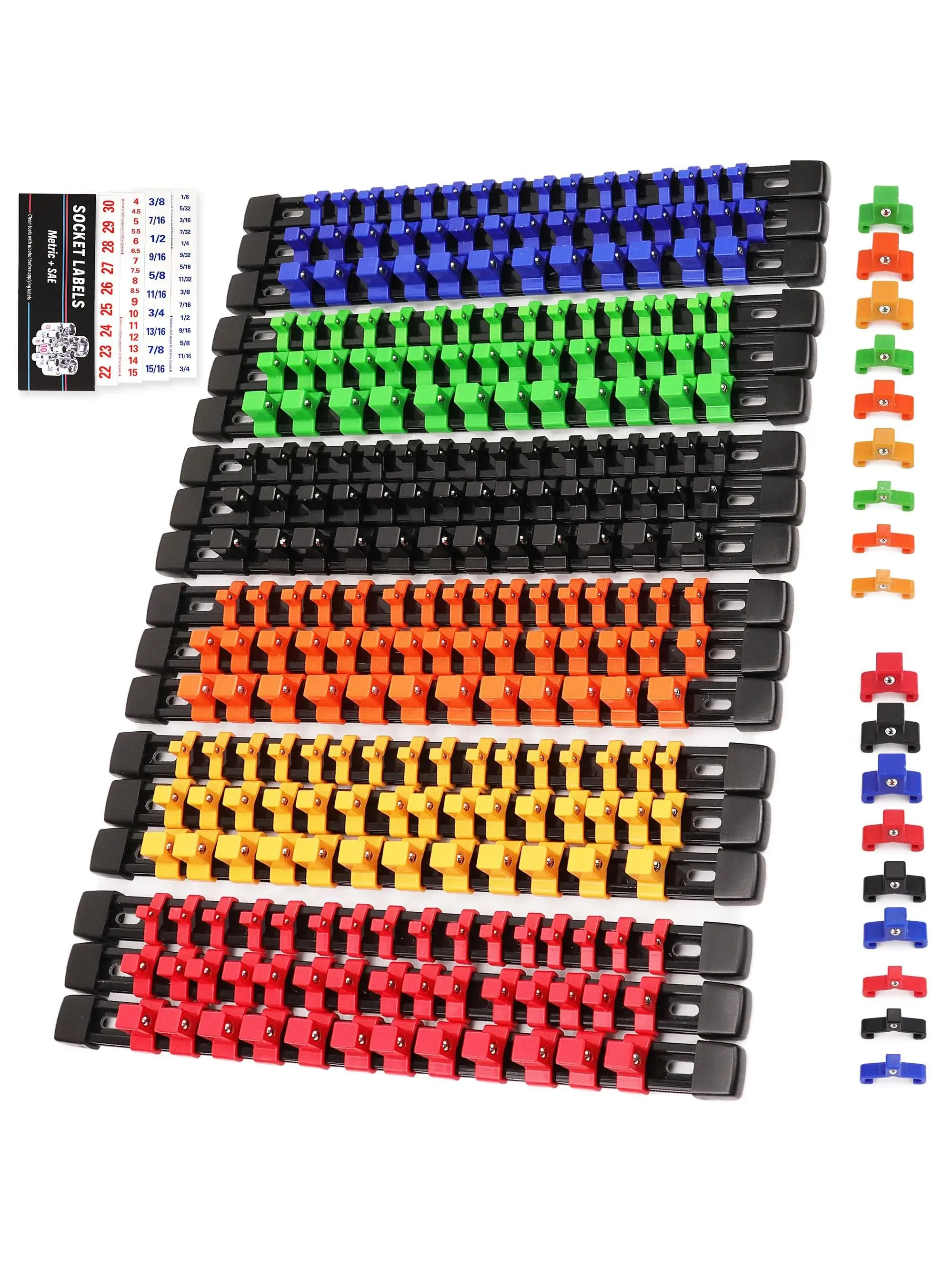 Socket Organizer Set 1/4-Inch 3/8-Inch 1/2-Inch Socket Organizer for Tool Box Drawer Drive Socket Trays, Socket Holder Clip Rail