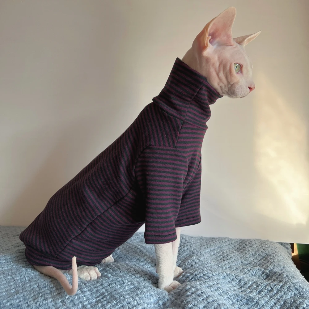 Striped Undershirt for Sphynx Cat Elegant high neck T-shirt for Kittens Dogs Spring Soft Long Sleeve Coat for Devon Rex Clothing