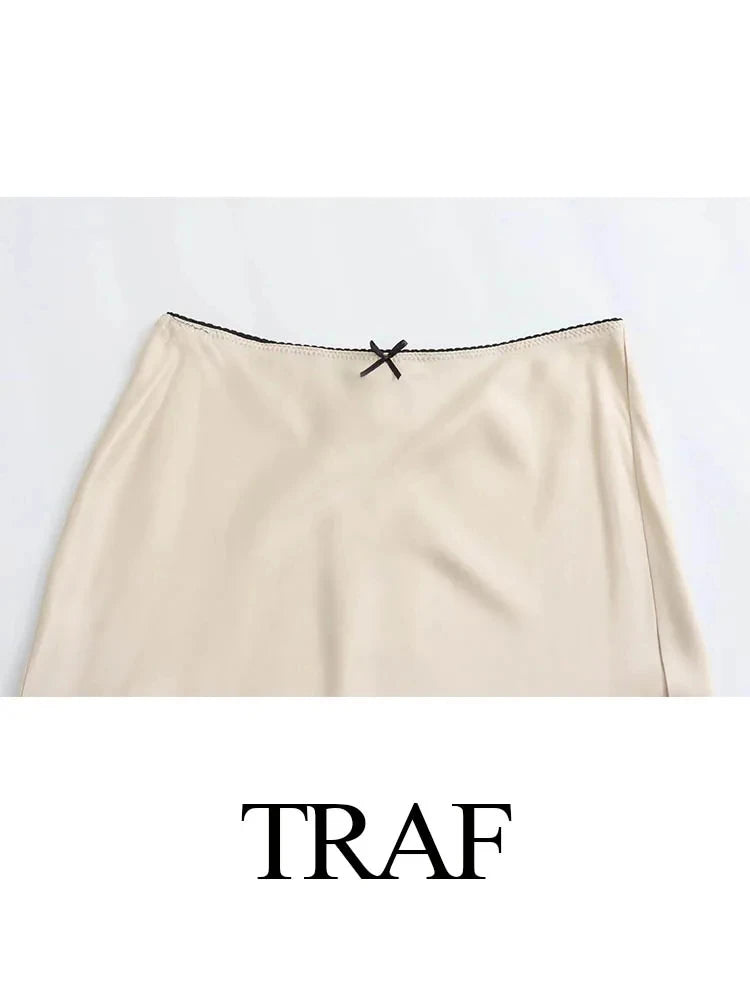TRAFZA Women Satin Skirt High Waist Midi Skirt Stylish Long Skirts For Women Fashion Chic And Elegant Woman Skirt Streetwear