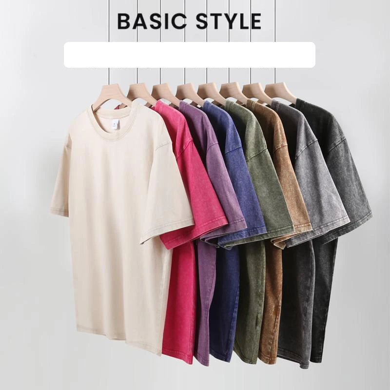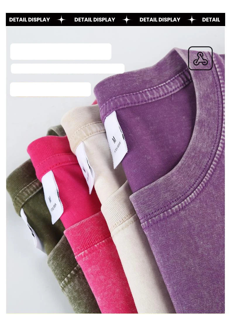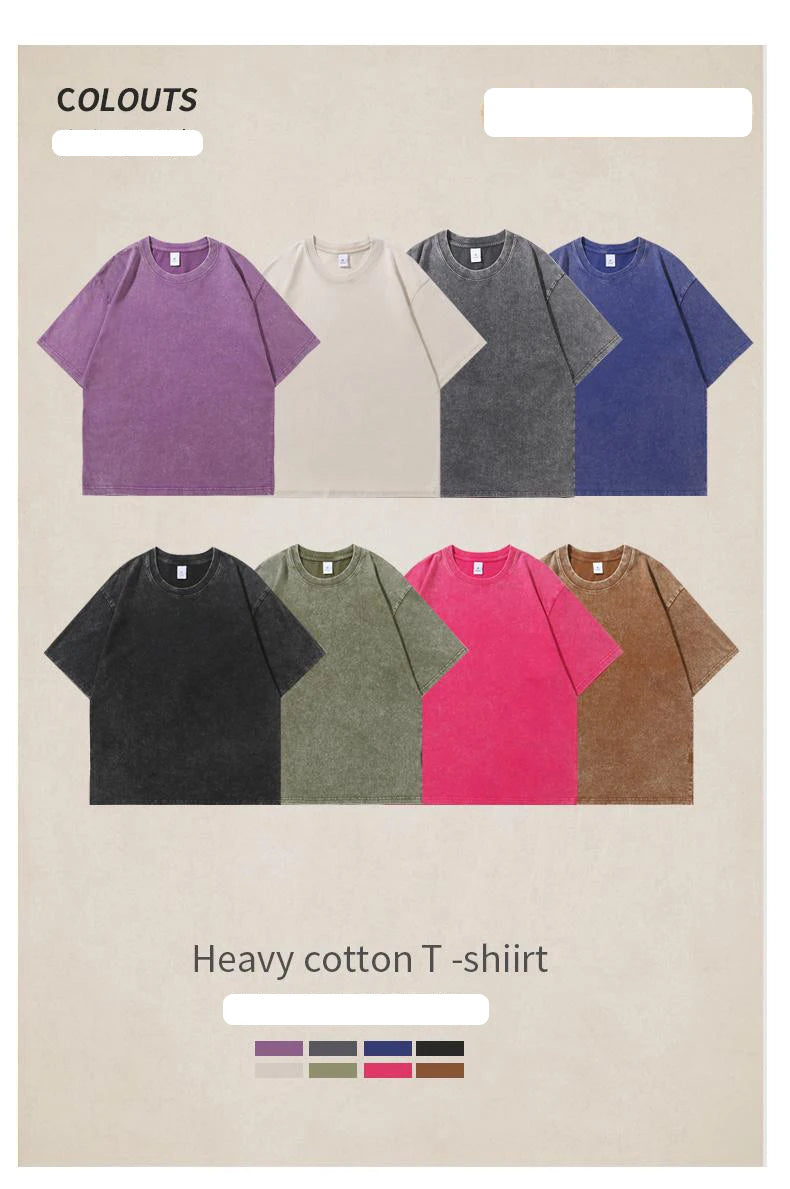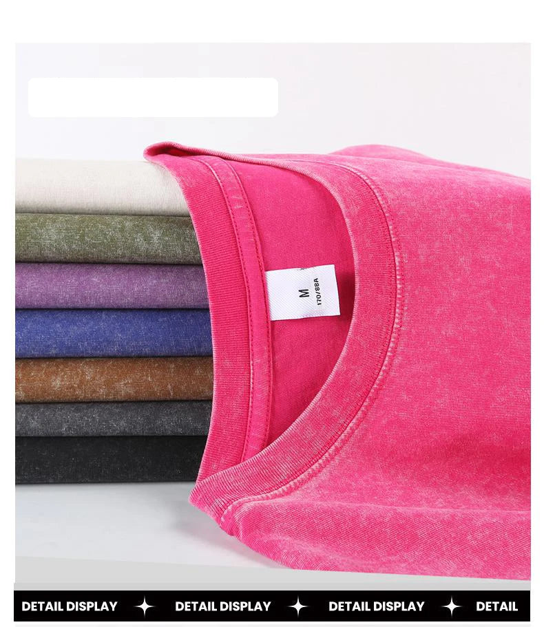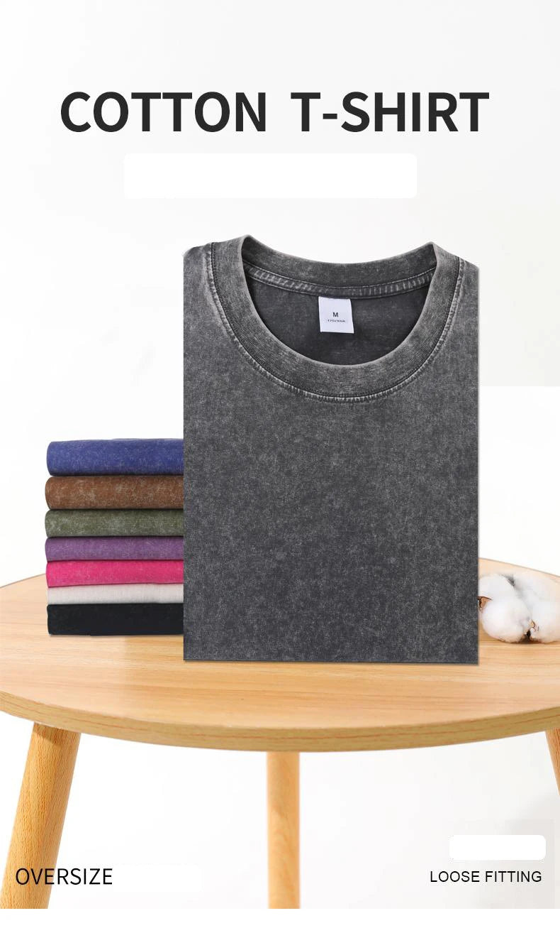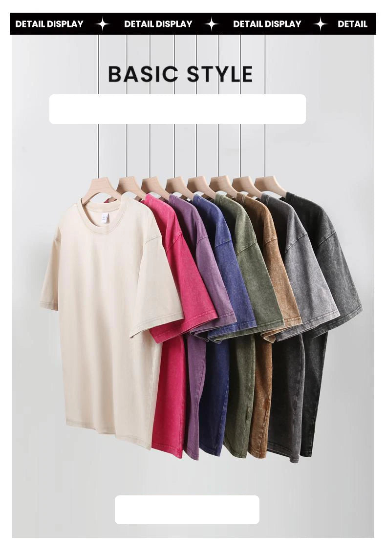 Washed Vintage T-Shirts Men's Street Hip Hop Retro Punk T Shirt Harajuku Casual 250gsm Cotton Short Sleeve Acid Wash TShirts Top
