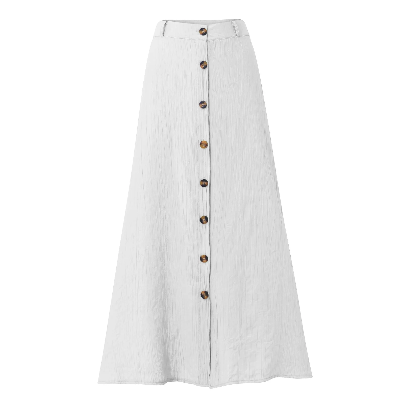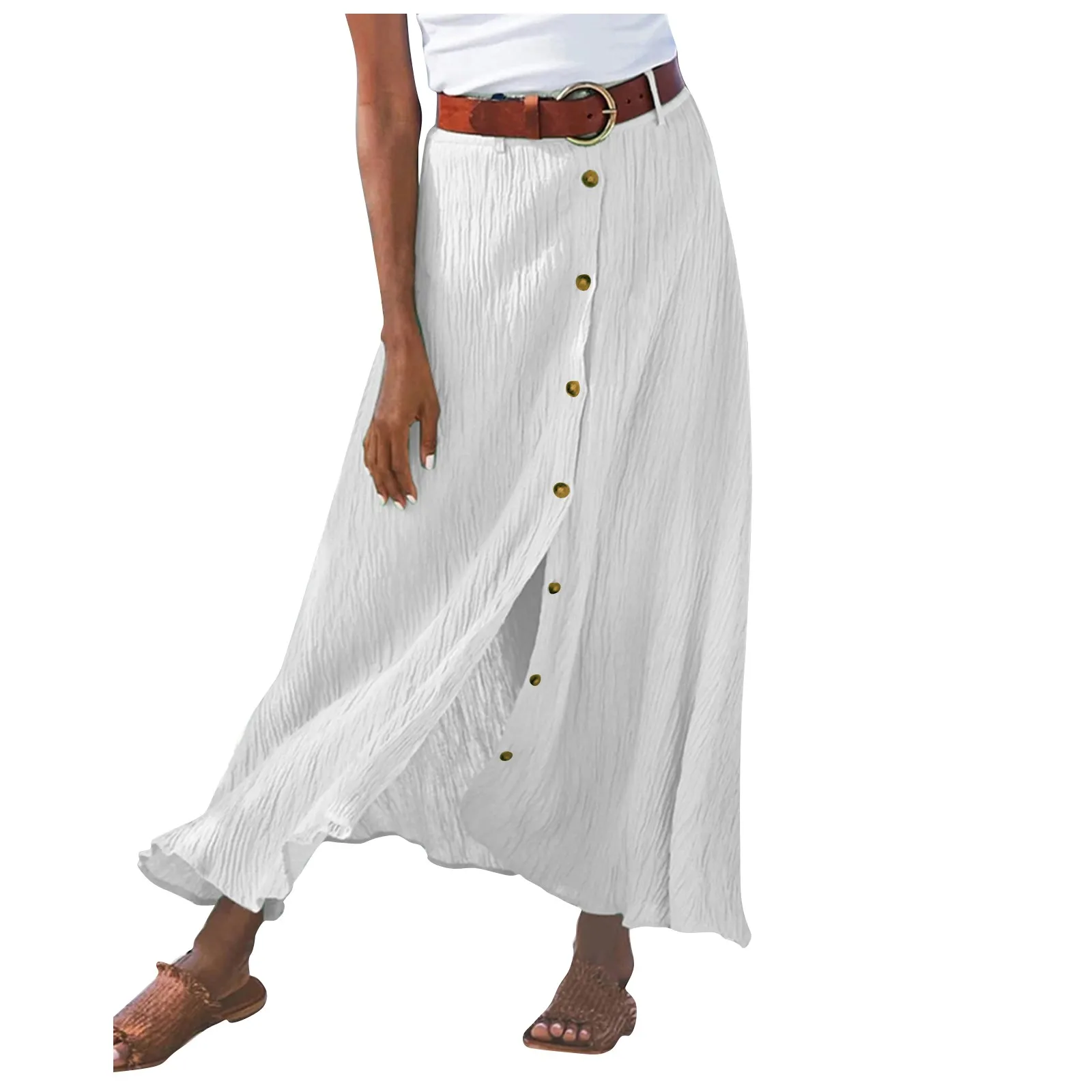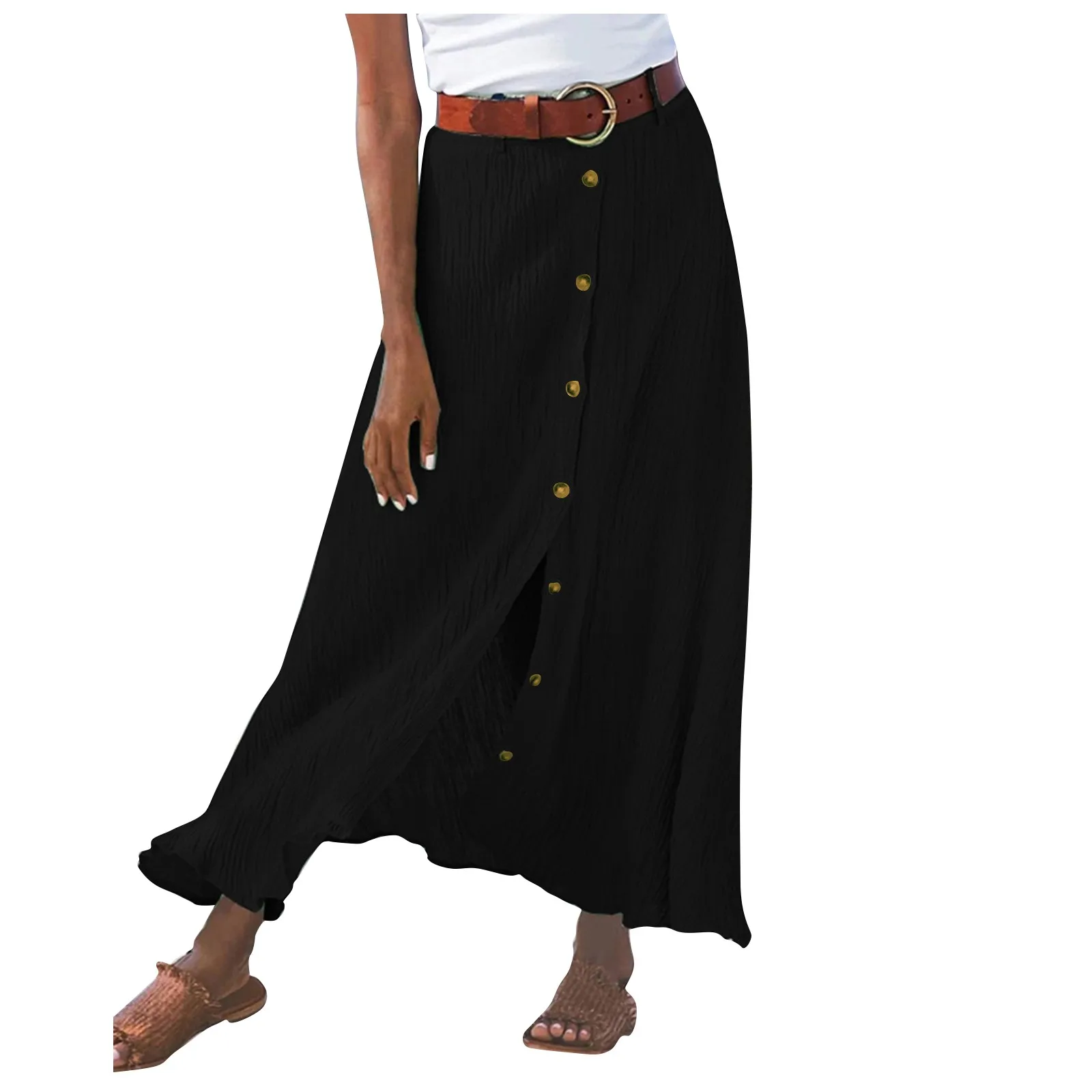 Women'S Half Skirt Midi Skirts For Women Bohemian Skirt High Waist Party Beach Button Skirt Women'S Loose Cotton And Linen Skirt