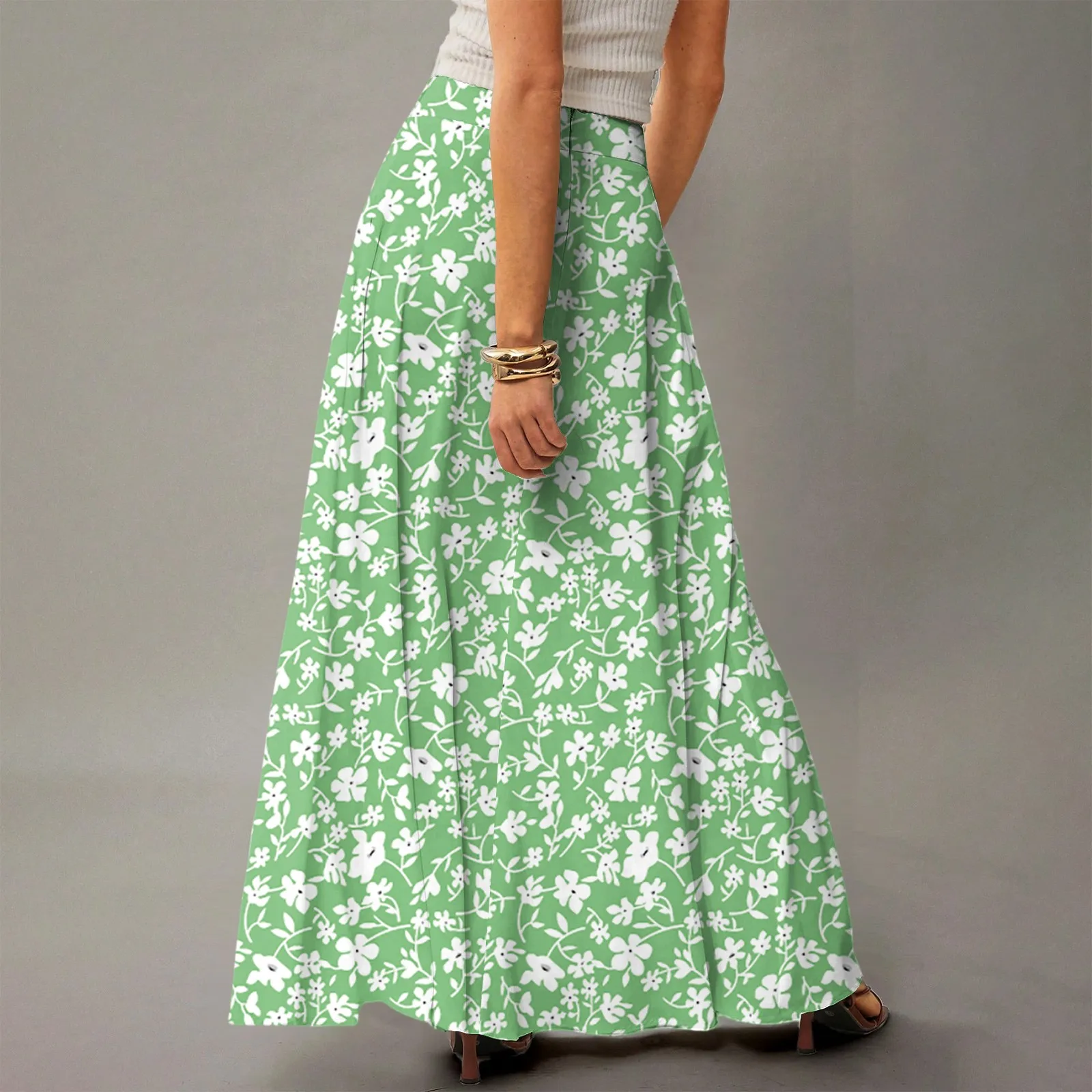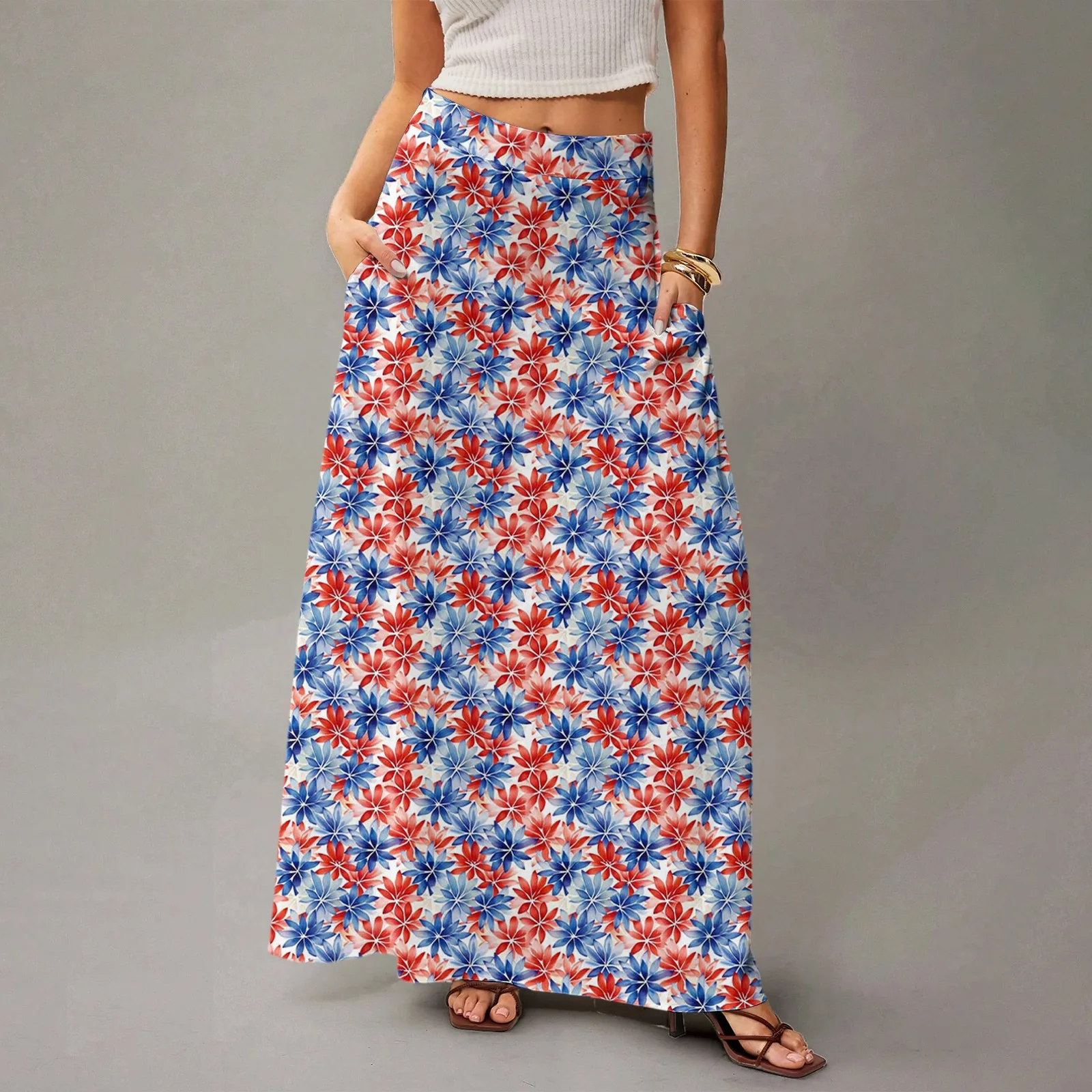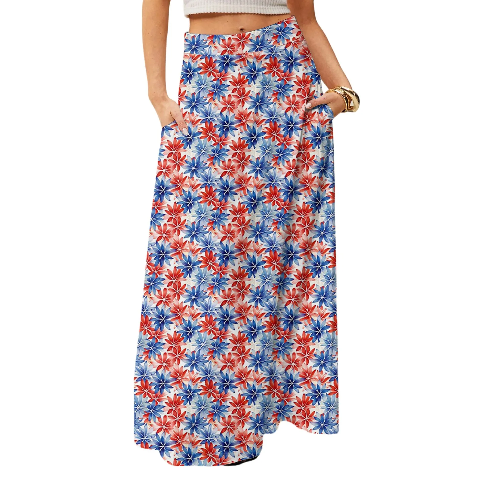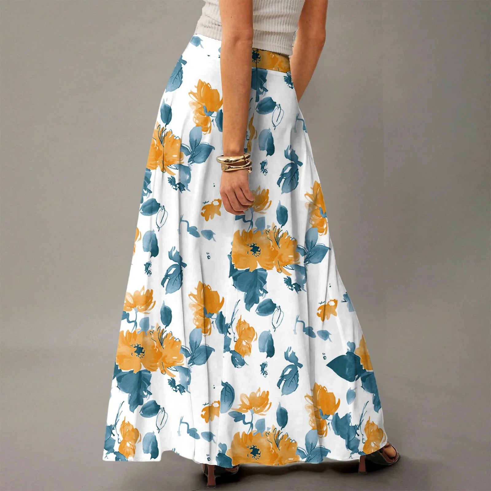 Women's Straight Skirt Casual Summer Floral Print Bohemian Skirt Flowing Maxi Skirts with pockets High waist Elastic skirt